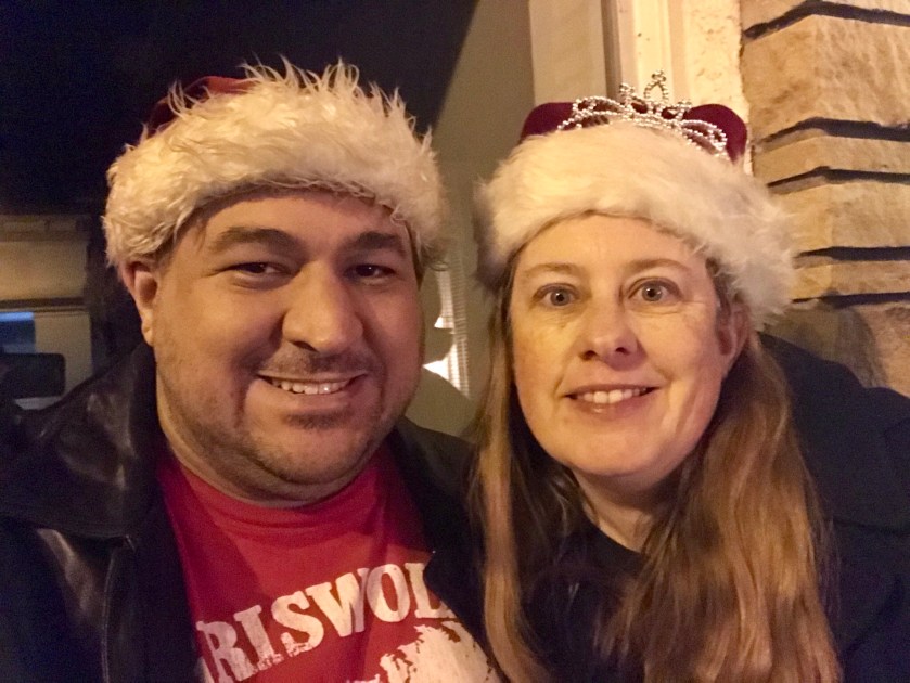Matt had his Santa hat and Christmas Vacation shirt ready for the event.