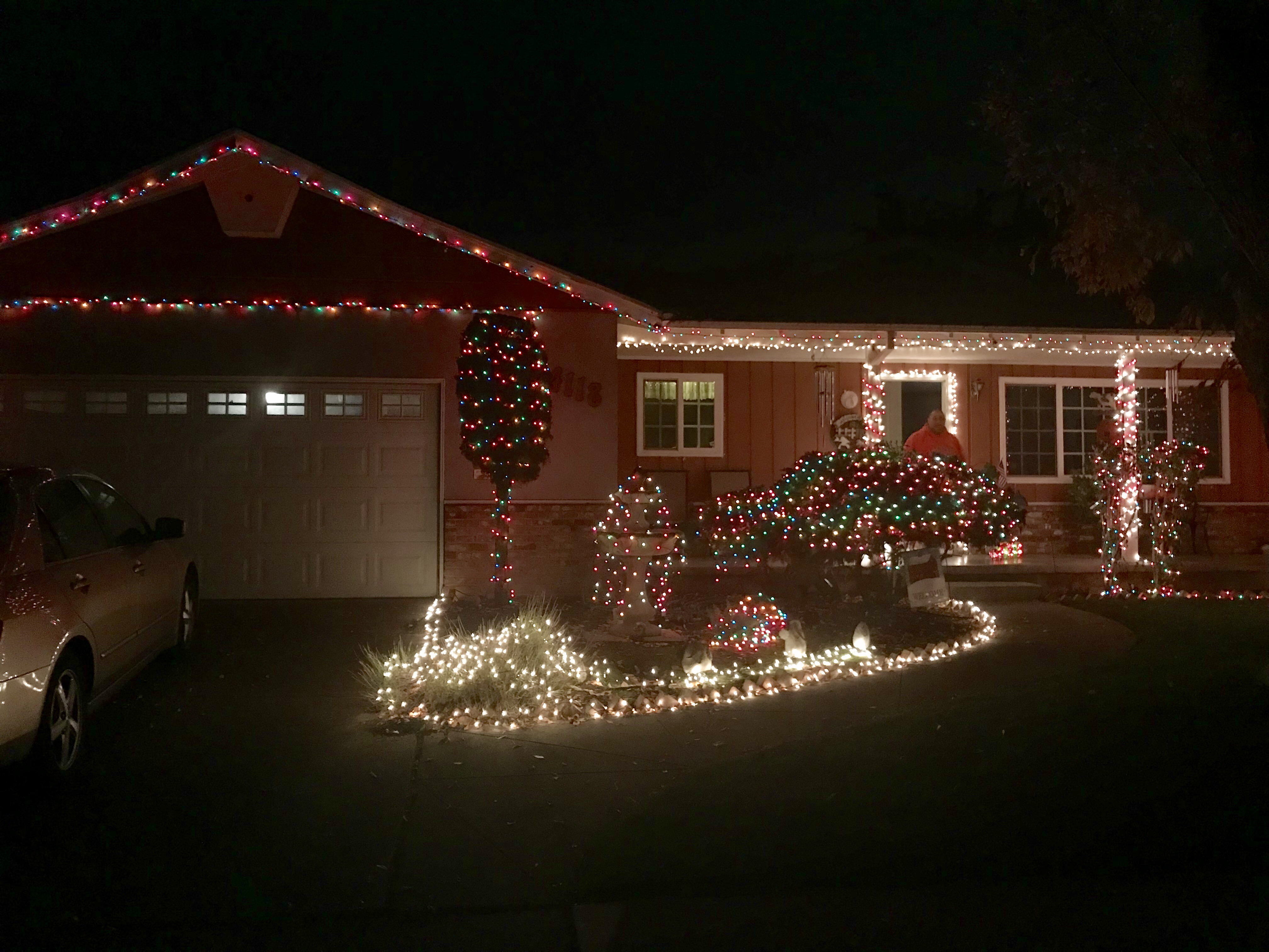 Matt spent several hours getting the lights ready on his mom’s house.