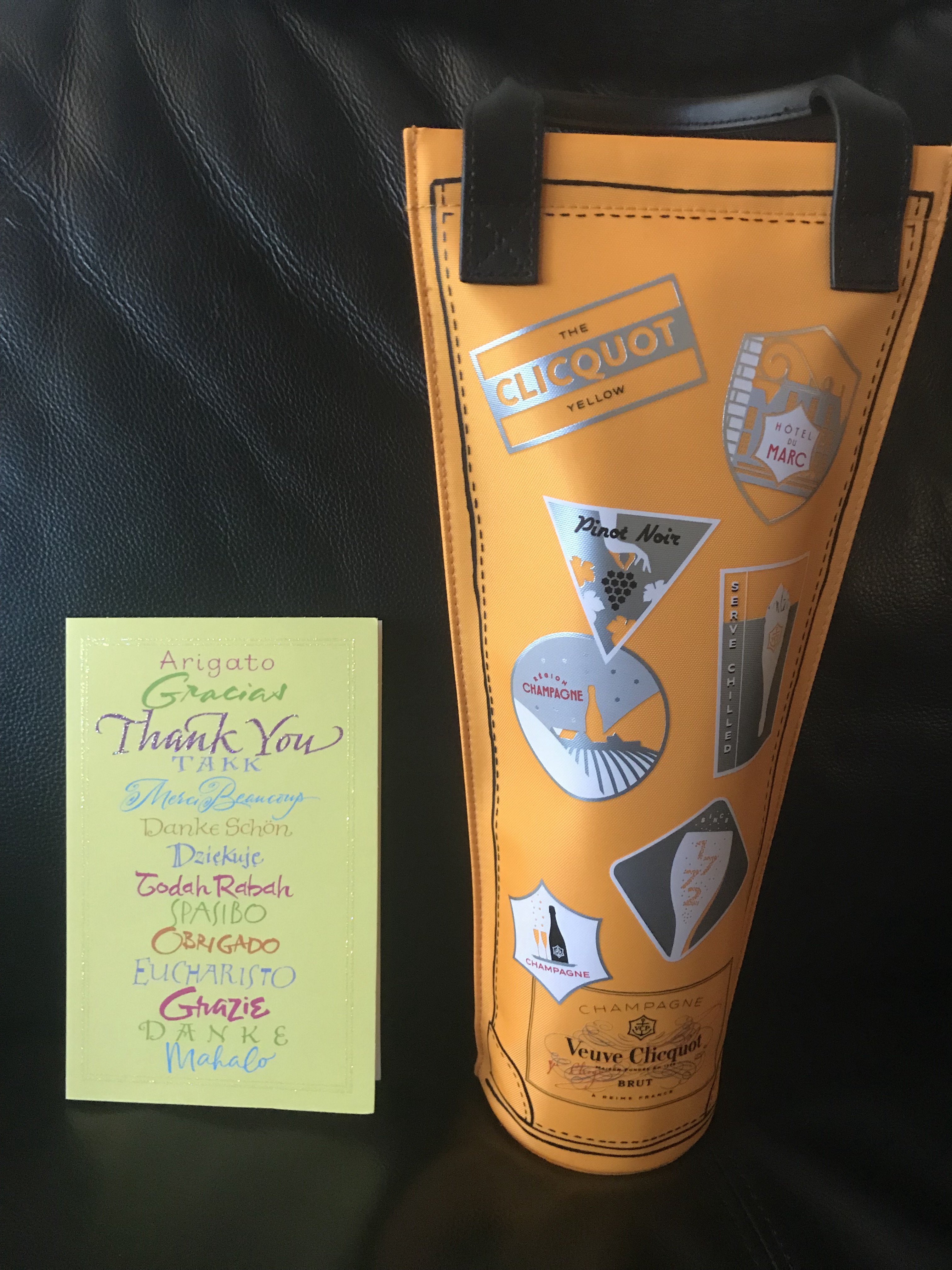 My whole pregnancy and giving birth went so smoothly with Dr. G as my OB. We were all so thankful that we bought Clicquot champagne and a thank you card that we all wrote individual messages in.
