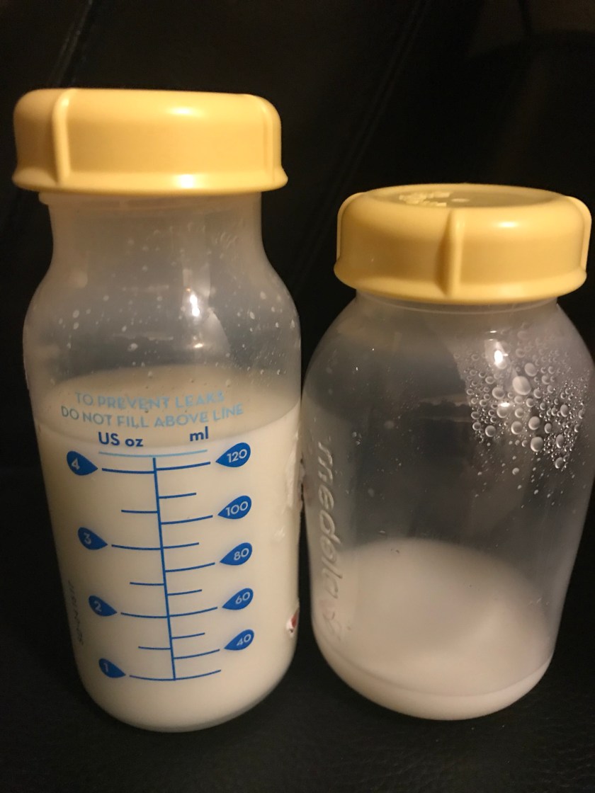 The good news is that in part due to the Mother’s Gold milk booster I’m taking, I can visibly affirm that I am making more milk. One early morning I pumped over 4 oz, which was a record for me.