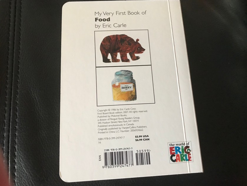 My Very First Book of Food was given to me by Sarah, who works with and appreciates good food. Looking at just the front cover, I originally thought it would be a book about making healthy food choices, perhaps even a small cookbook of sorts.