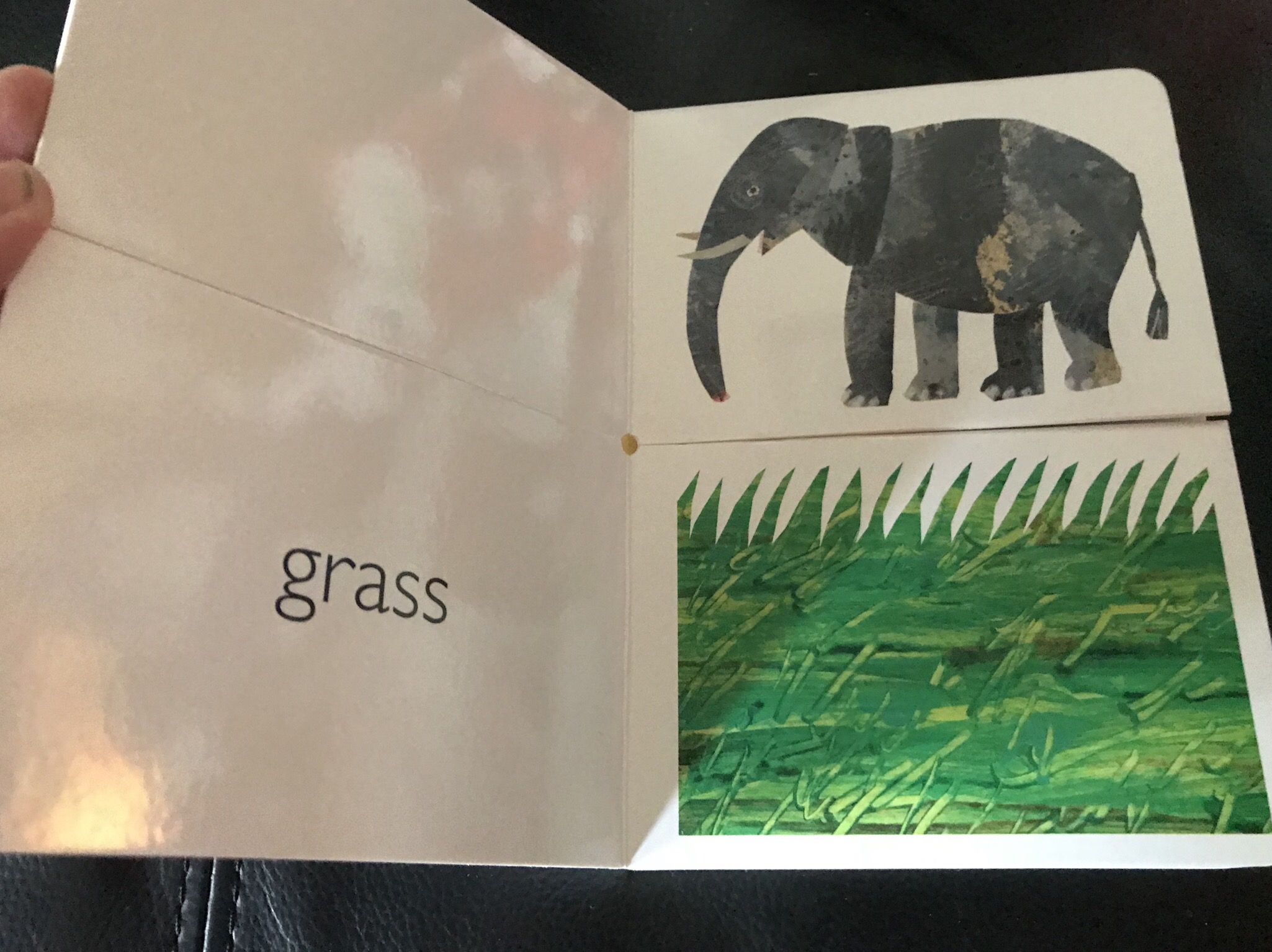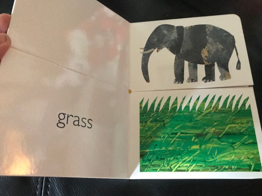 The elephant is meant to be paired with peanuts, yet one would might eat grass as well, the choice on the flip page it’s on.