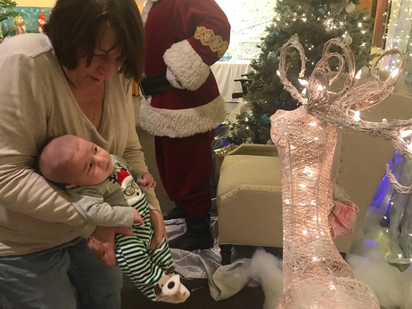 While Santa took a break from taking photos, Candy took William to see the reindeer that had fascinated him so.