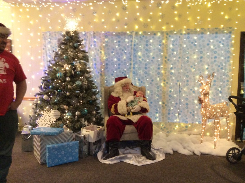 At first William was much more interested in the reindeer to his left, rather than Santa.