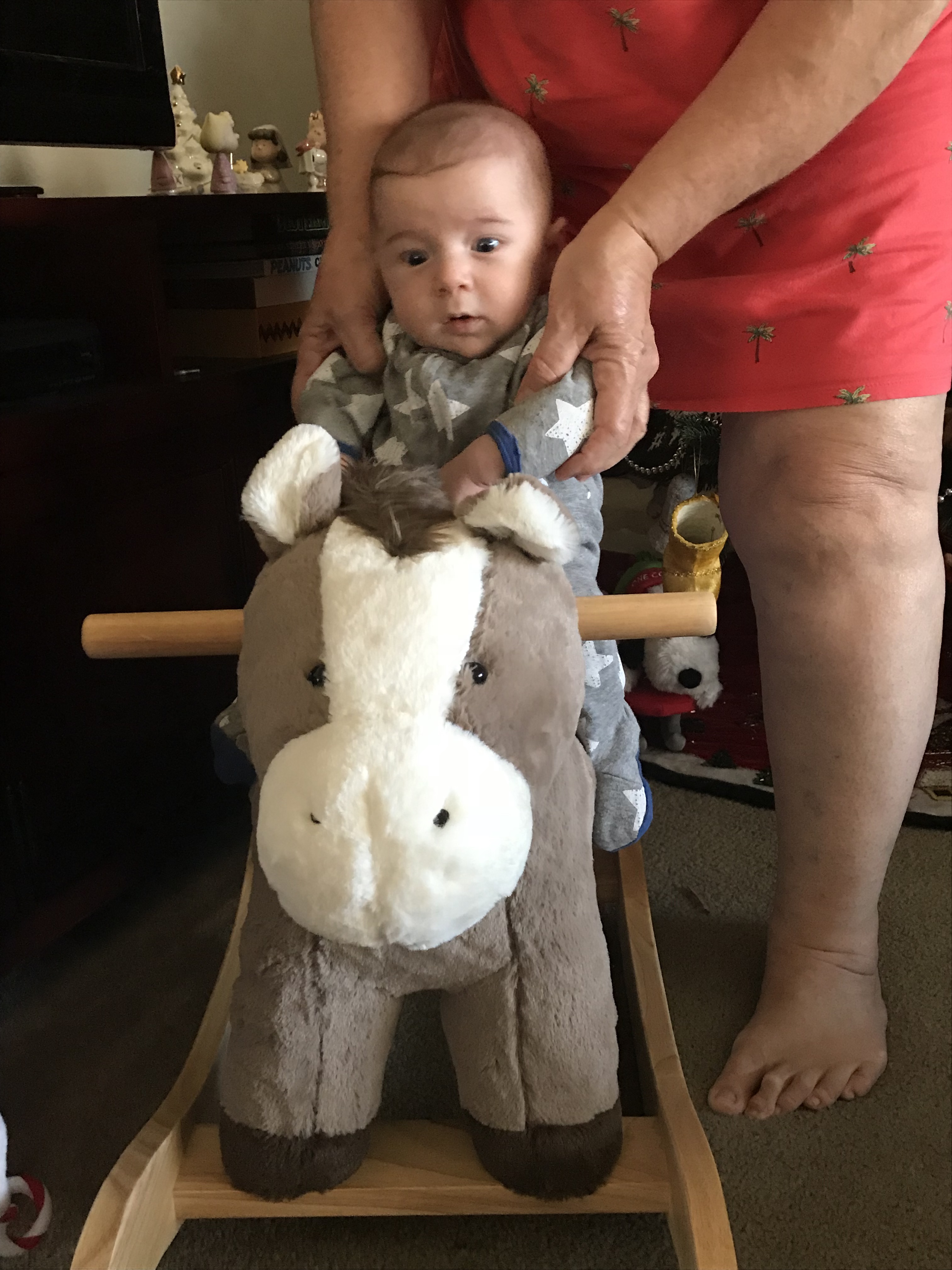 He looked pretty excited to be on it. I look forward to him being able to use it fully in the future. When he is old enough he will get presents from family on Christmas Eve and presents and a stocking on Christmas Day.