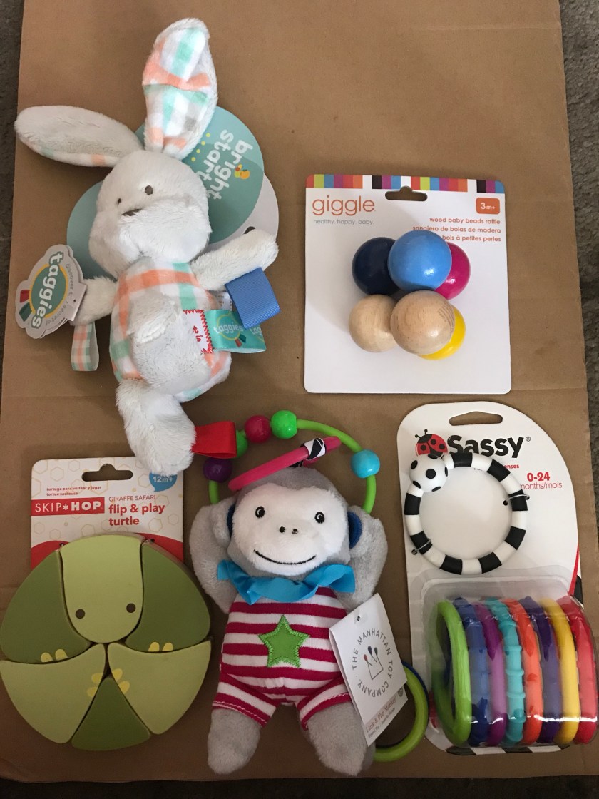 William’s stocking was full of colorful toys including one from Candy and one from Matt and I to hang down and provide entertainment for when he is in his stroller.