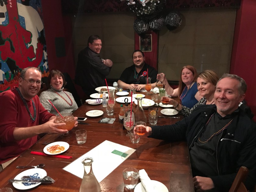 Since Matt hit the milestone birthday of 40 this year, he was given two special celebrations. The first was yesterday, his actual birthday, which was spent with some friends and family members at the restaurant Nola, where we had spent Steve’s 40th birthday weeks before.