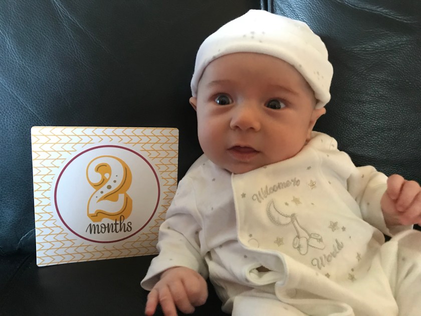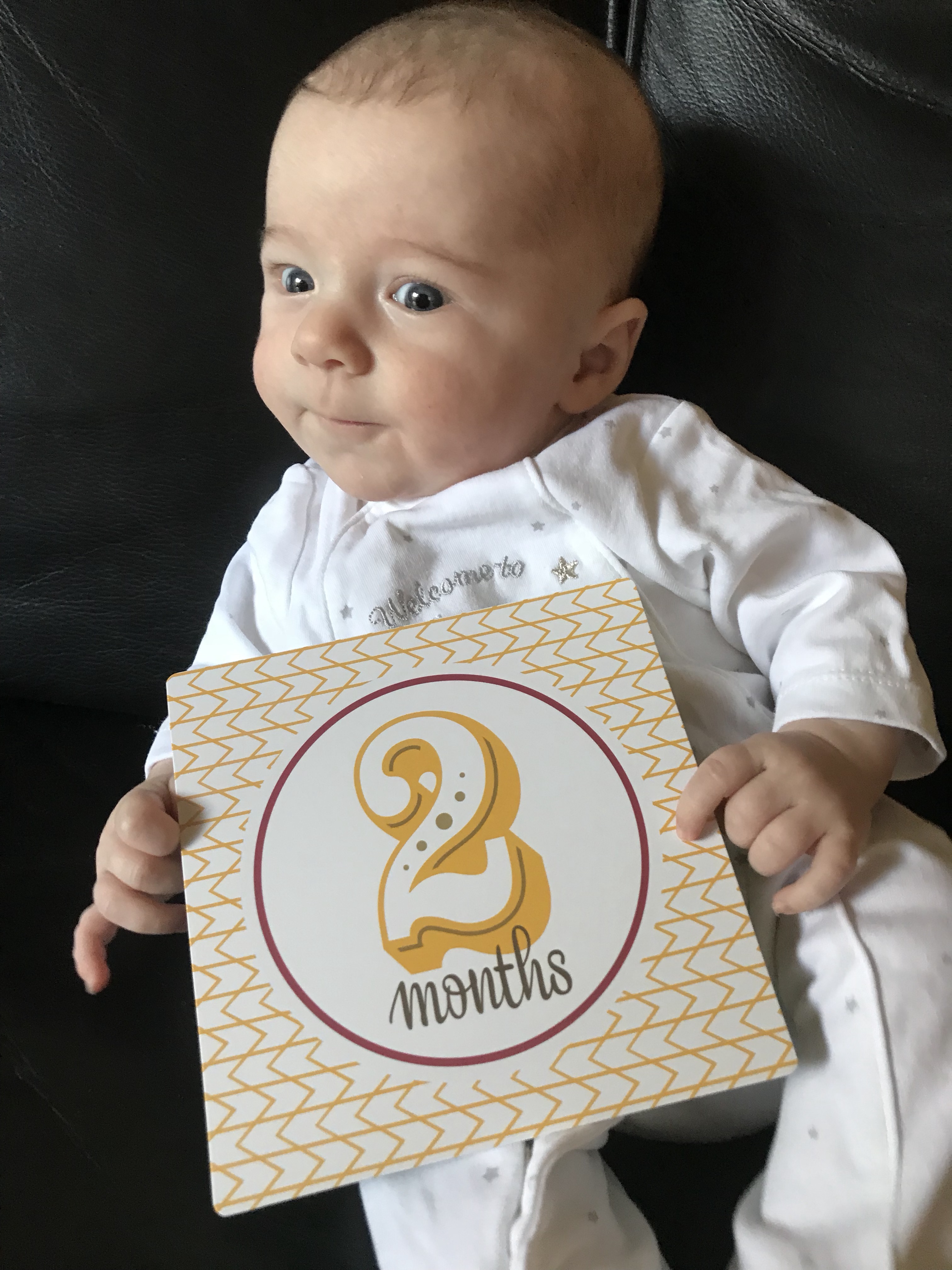 I’ve taken and had taken many photos of William both before his birth in my growing bump and as a growing baby. Some of my favorites have been the ones with many props. His actual two months was on a Monday, always a busy day for our household, so this shoot was taken a few days later.