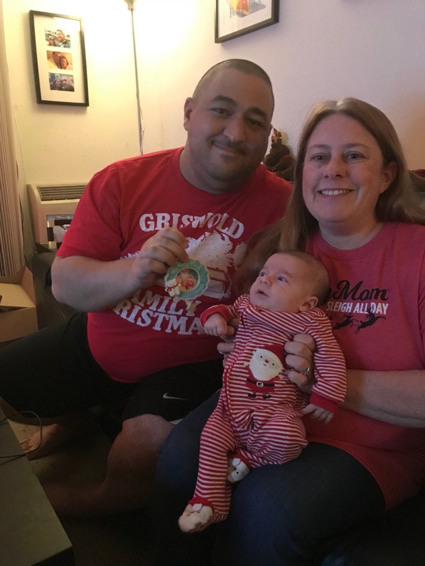 This is a weekend of tree decorating for the Perri family. To start Candy visited us in San Jose so we could decorate the tree together. Candy had the great idea for us to take photos of William with the special ornament to commemorate his very first Christmas.