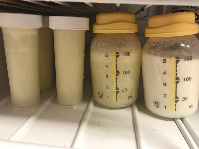 The job is a reverse commute, so I am able to get to work in a good amount of time. While more people may return to work next week, it should still be an easy commute. Each day I come in early, go to the Mother’s Room and pump, then get my desk ready and start work. I’m pumping also during my breaks and during lunch where I power pump starting with twenty minutes on, resting for ten, then resting and pumping in ten minute increments.