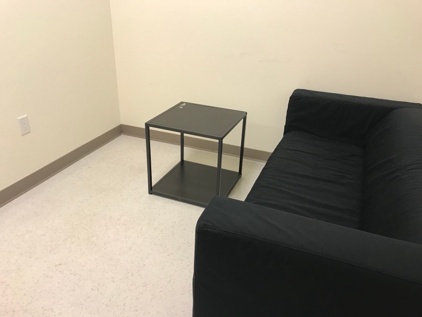 Blaney and I had had a talk last week about strategies for going back to work. One thing she recommended was finding and getting comfortable with the Mother’s Room early on as I’d be using it several times a day. The room turns out to be very close to my desk. It features a long comfortable couch and lightweight table.