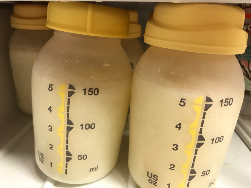 It turns out instead of one needle there are three. He had two injections in one thigh and one in another. One thing I also did to help prepare him for the visit and continued to do after was to provide as much breast milk as I could for him. If I had been with him, I would have nursed him directly before and after the vaccines. Instead, I sent him to daycare on Thursday with many containers, had some ready for him for when he got home on Thursday and sent even more to day care on Friday. I had to deplete my entire stash so far to do it, yet it was worth it to get the best possible milk I could in him.