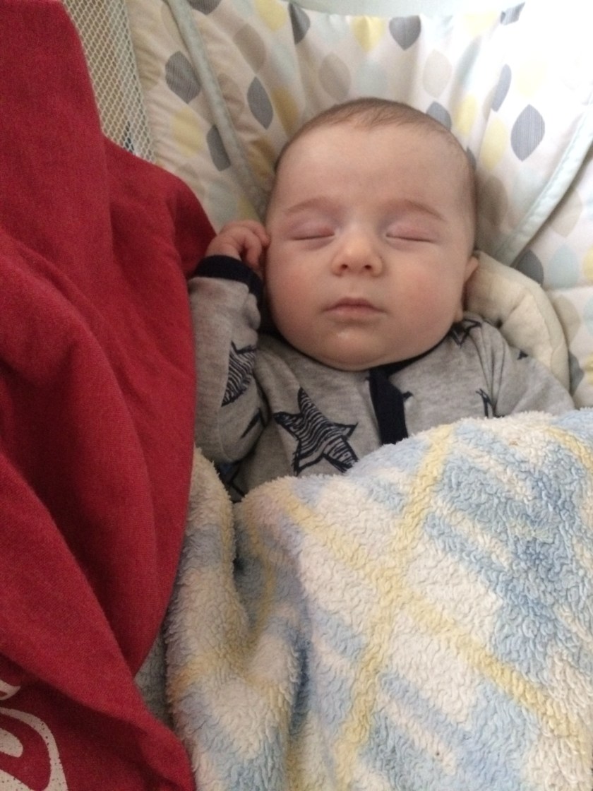I had prepared Mirabel for him to be very fussy on Friday. It turns out he actually was not any more fussy than he normally would have been. She sent me this adorable picture of him sleeping.