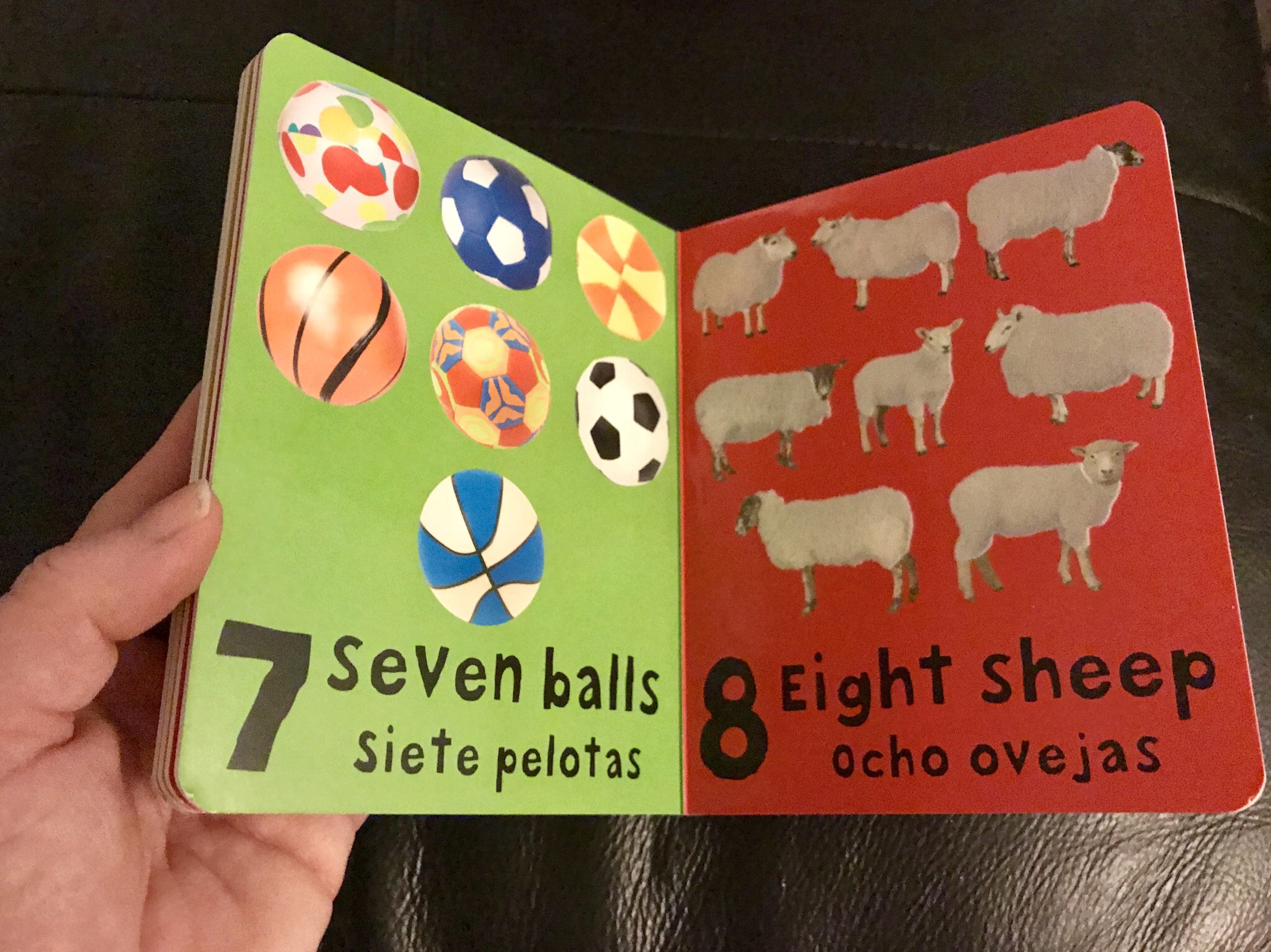 It was when I got to the page with the different balls, yet similar looking sheep, that I started wondering, how important was it that the objects or animals were similar, and would this be confusing and/or distracting for babies and especially toddlers and above.