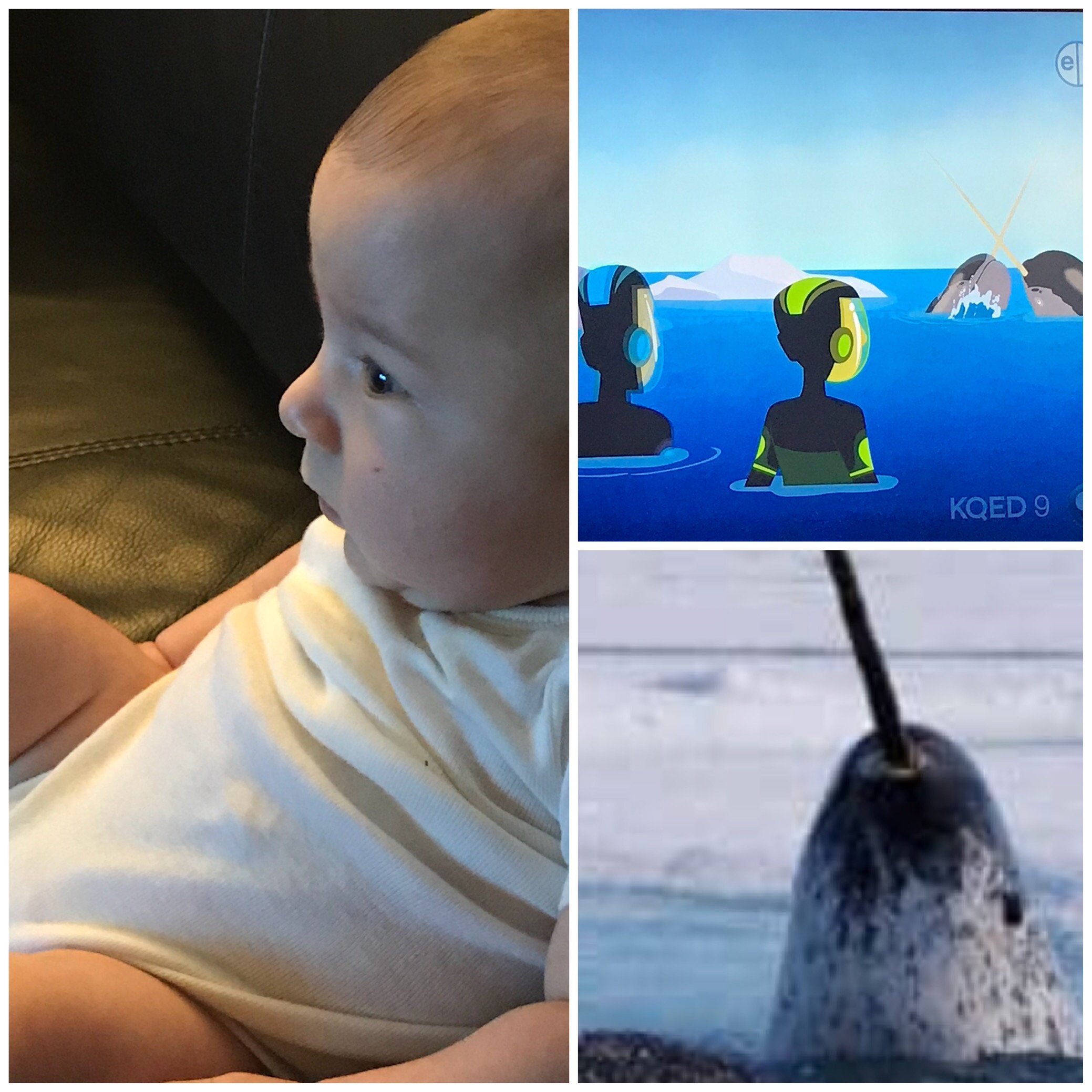 This photo shoot features photos of William that are less posed, and in some cases not posed at all, sort of a mini day in the life of him. A few minutes before I took the above photo with him, I took a photo of him enjoying watching Wild Kratts Creature Power on KQED. William is fascinated with television programs with a lot of movement, and this one has bright images that move fast, in addition to being educational. Today’s show featured the rare creatures known as narwhals. William was actively watching the show and did not see me taking the photo of him or ones of the screen at all.