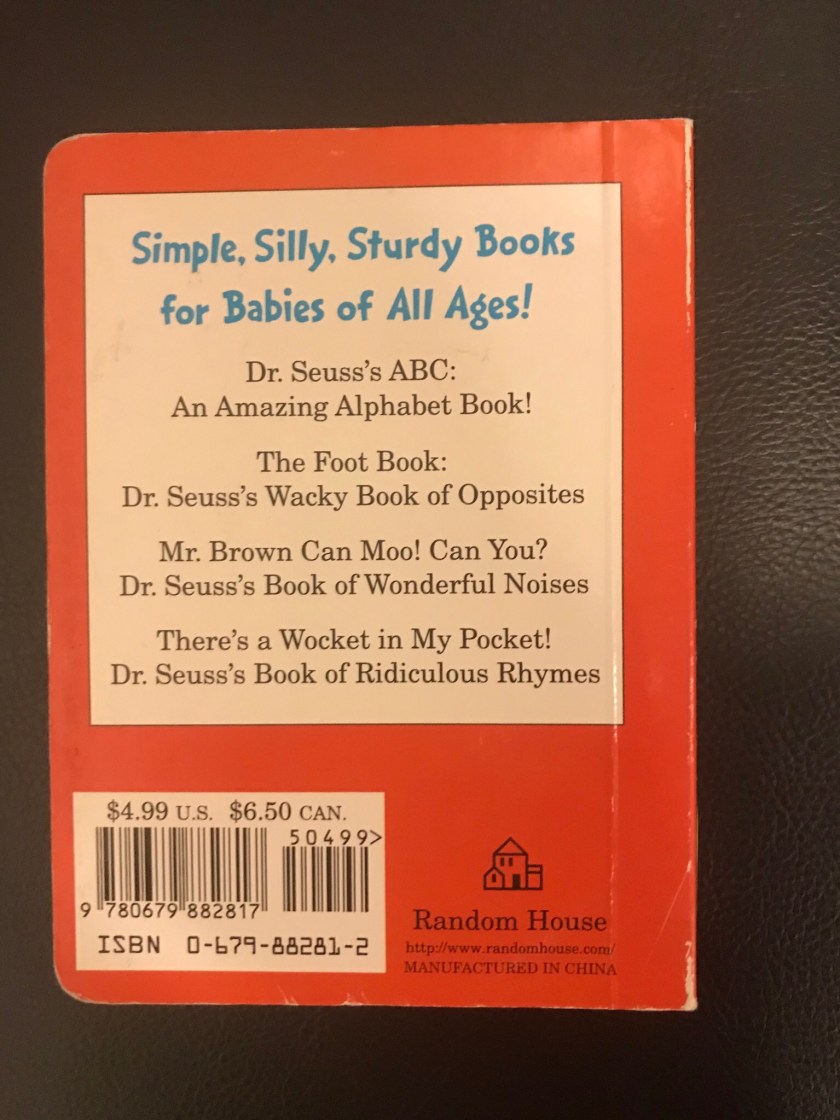 As with Ten Apples On Top, this book did not have any information about the actual book on the back cover. It did instead list a few books in the series, including itself.