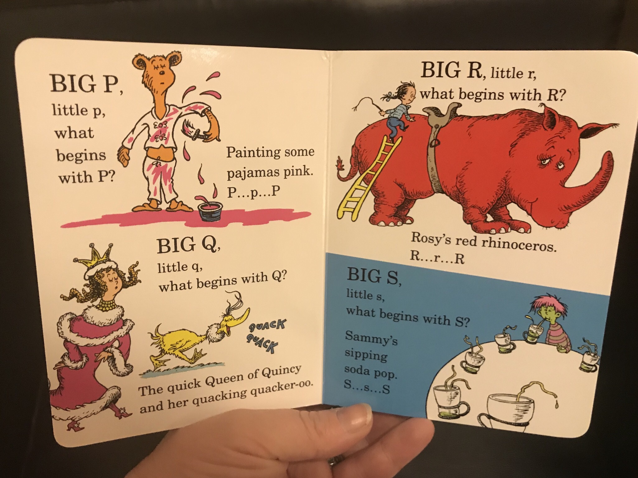 Even though Dr. Seuss books are known to have a little to a lot of silliness in them, neither Matt nor I were fully prepared for the page on F which starts with normal words and goes to Fiffer-feffer-feff. After I read that aloud he actually asked me what I could possibly be reading to William.