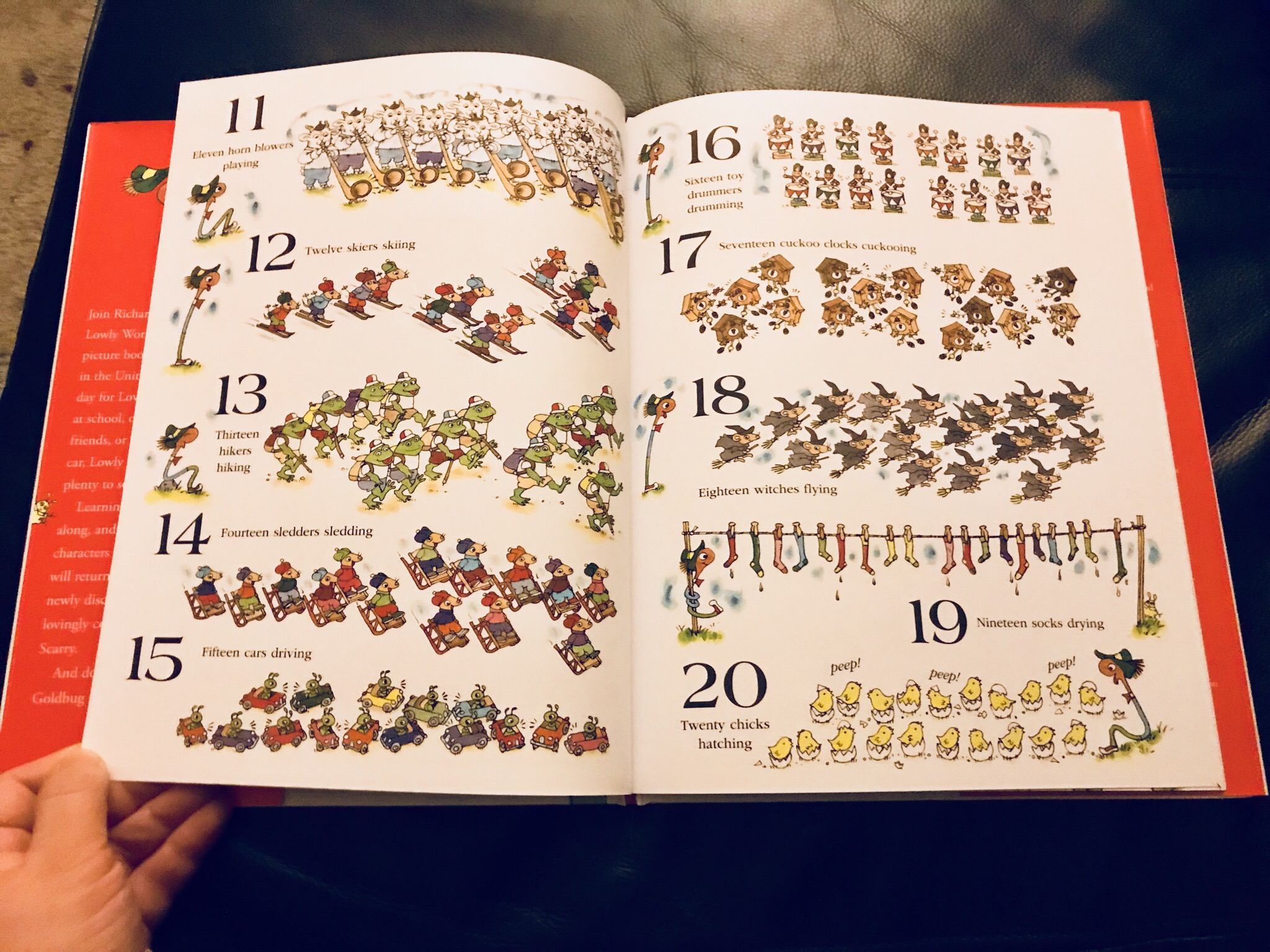 Additionally, numbers up to twenty are written about and demonstrated as numerals and in pictures. This was really cool as the books I’ve seen so far stopped at 10.