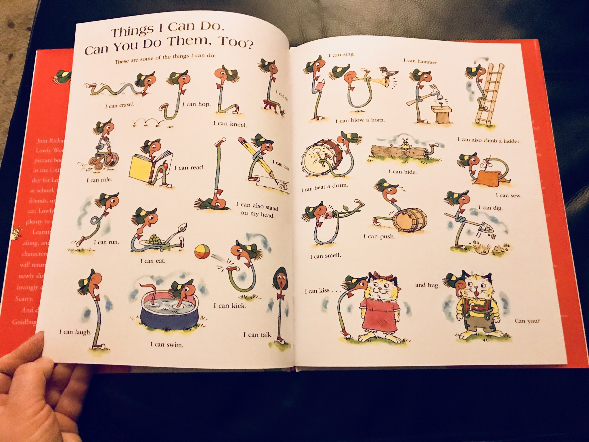 The book even tries to engage the child directly showing activities that Lowly Worm can do, while inquiring if the child can also do these as well.