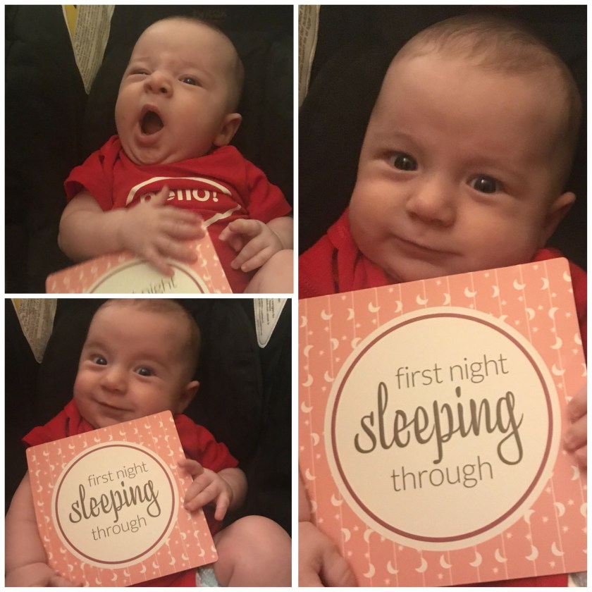 Many things can influence how well a baby sleeps. I’d heard that 11 pounds was a magic weight and when William reached it, he would sleep through the night without waking even to eat. This did not happen. However, just a few days ago he did so for the first time and while we know this may not happen again for a while, I was delighted to be able to use this card.