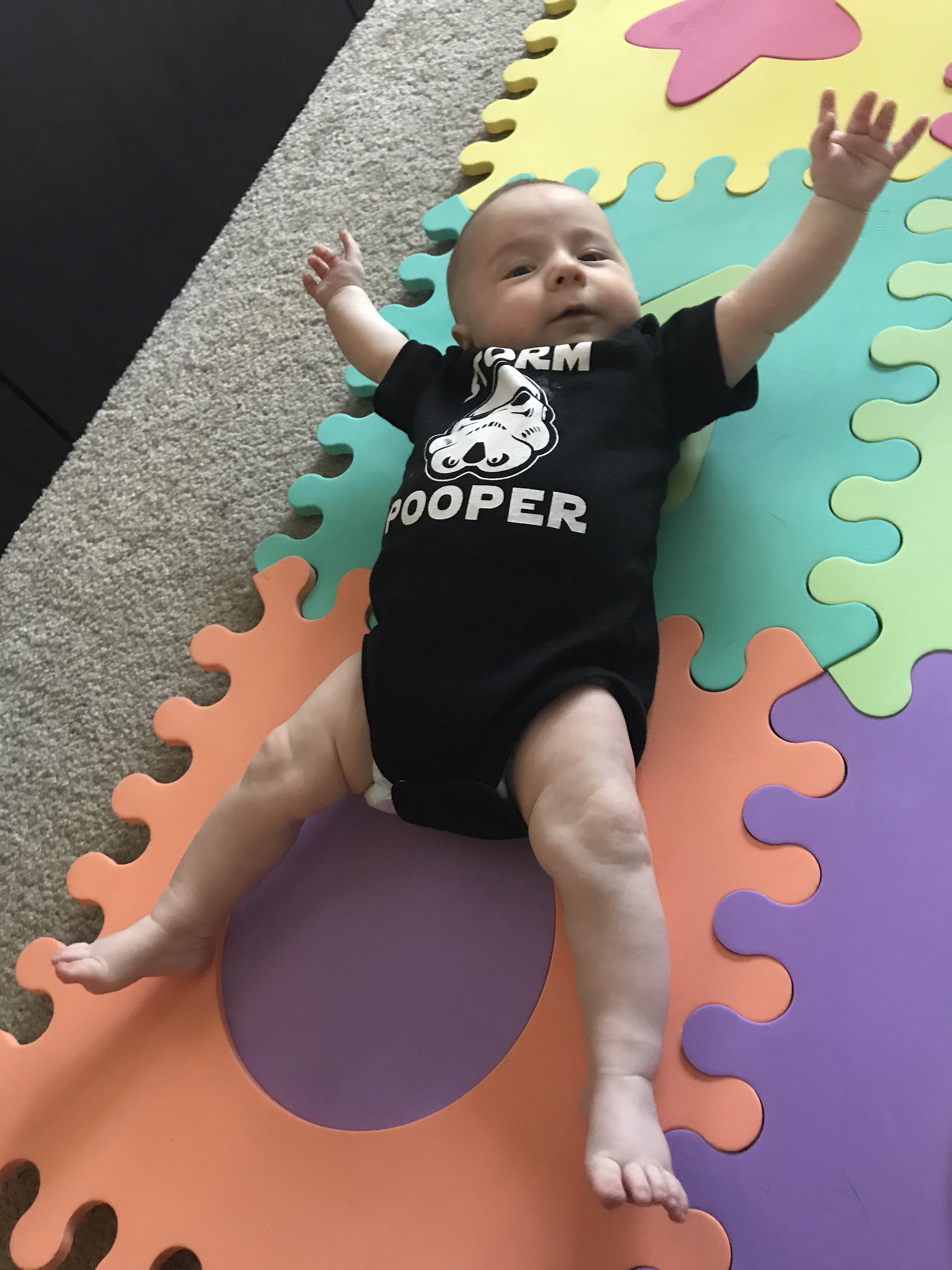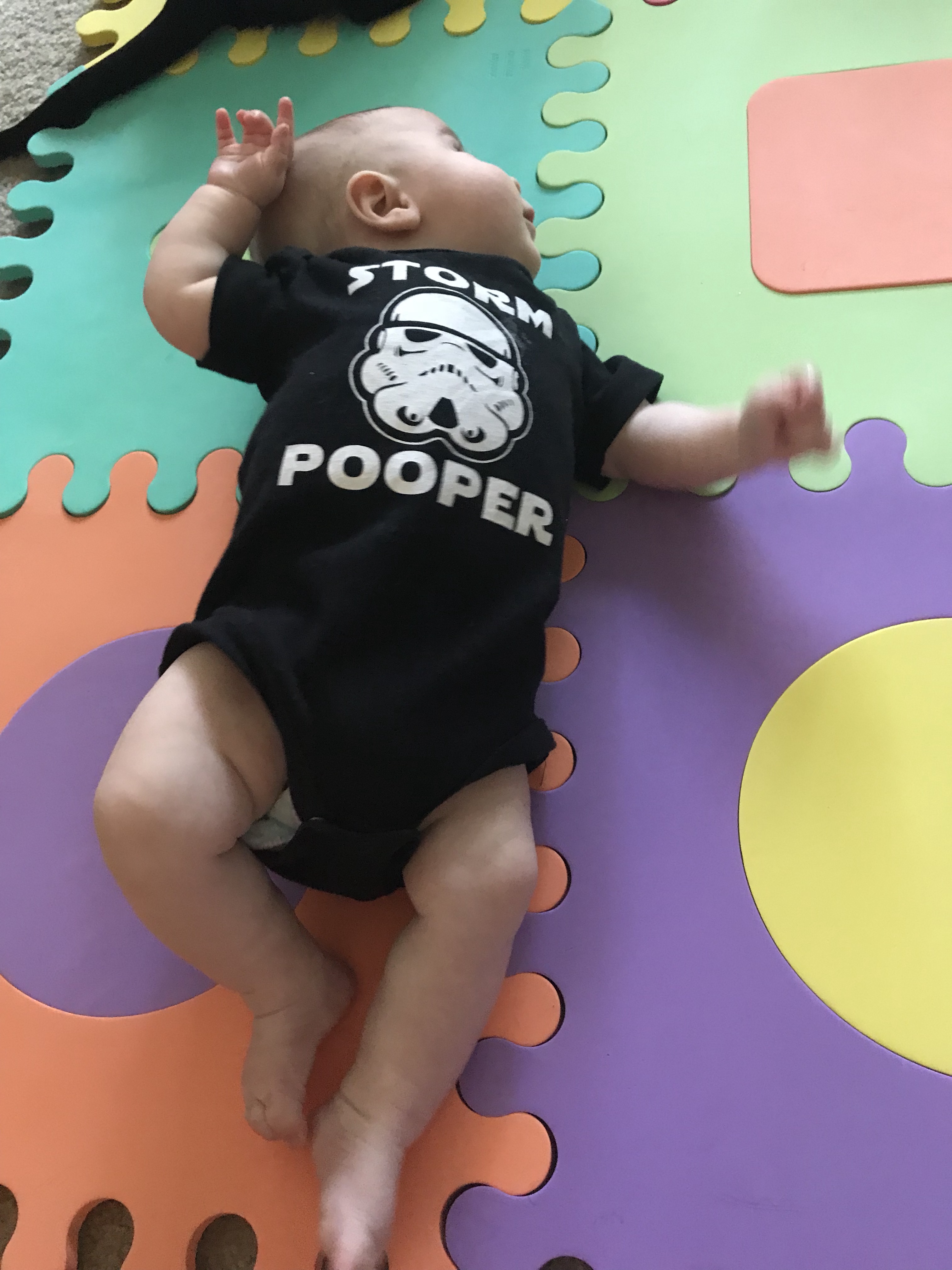 As aforementioned he reminds me so much of me in this photo. It’s funny as he’d be in his bassinet next to me as I sleep and with a peek through panel, it’s possible he’s seen me sleep like this, or it could just be a tendency he has from me without ever having seen it demonstrated. Either way he looked so happy.
