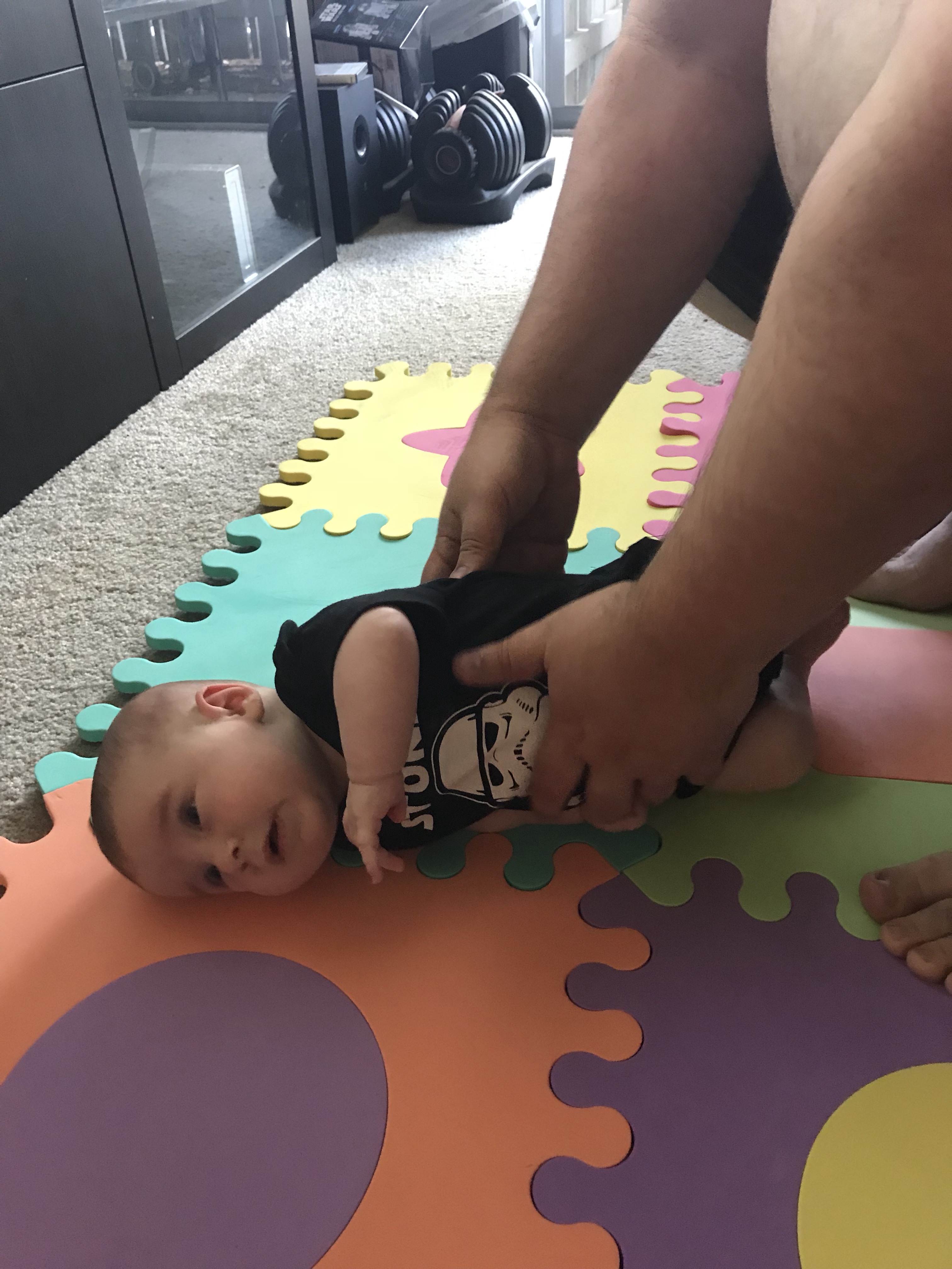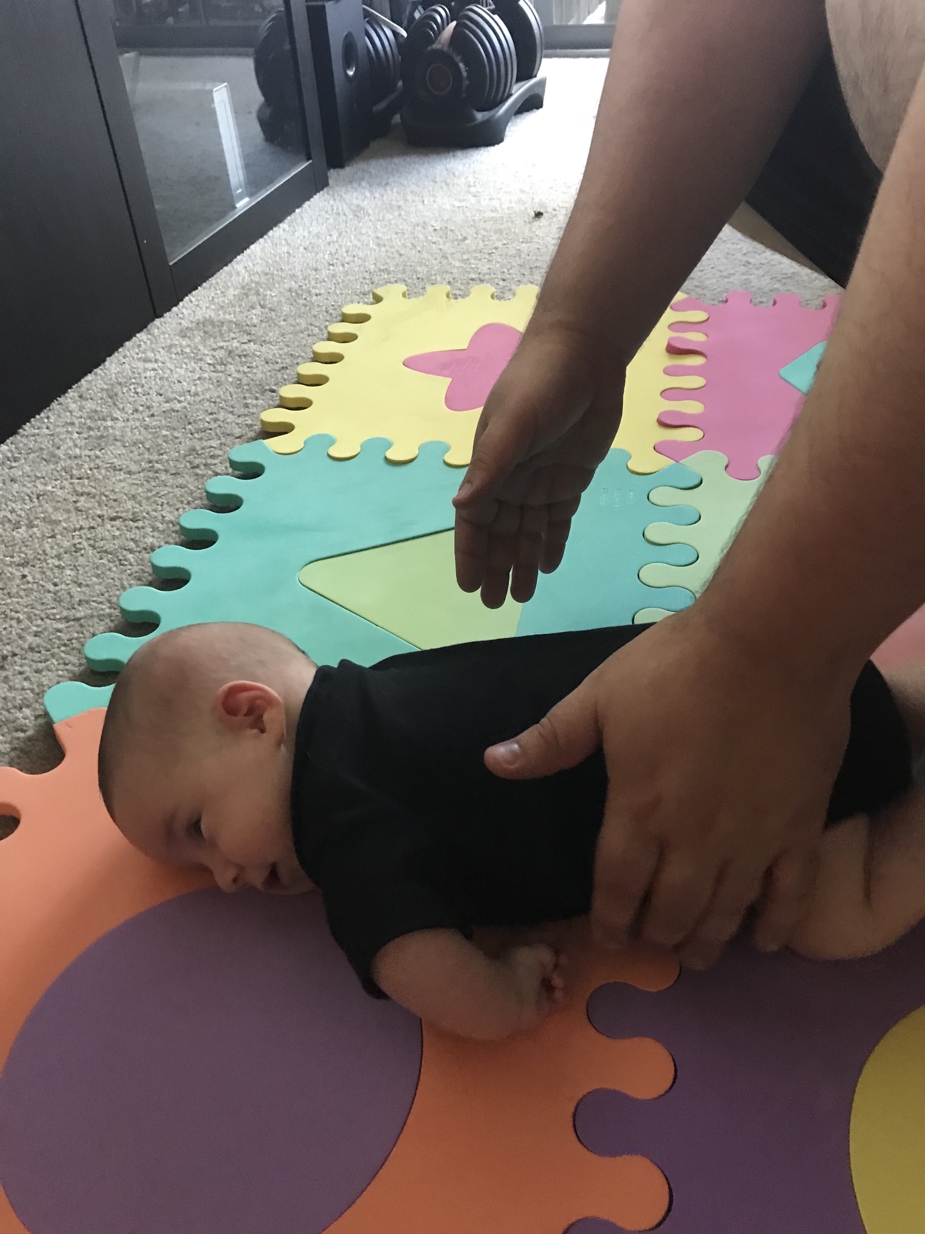 Matt watched him closely in all this and said it was due to both how he had his arm underneath (which he changed a bit in some of the tries) and not having the strength yet to roll over that arm.