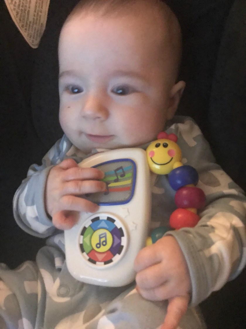 Even when it’s not playing music he holds it close often as it’s one of his favorite toys.