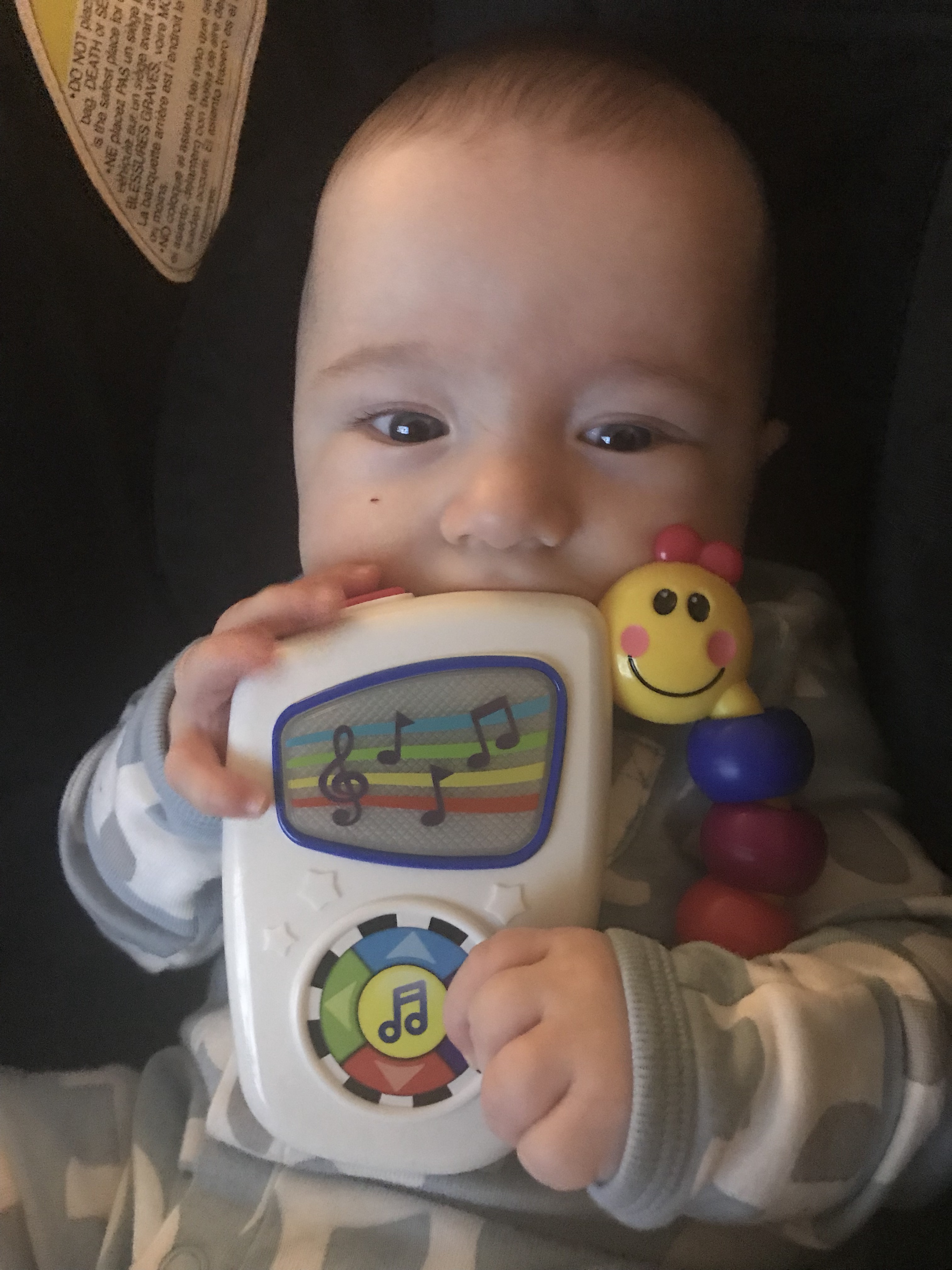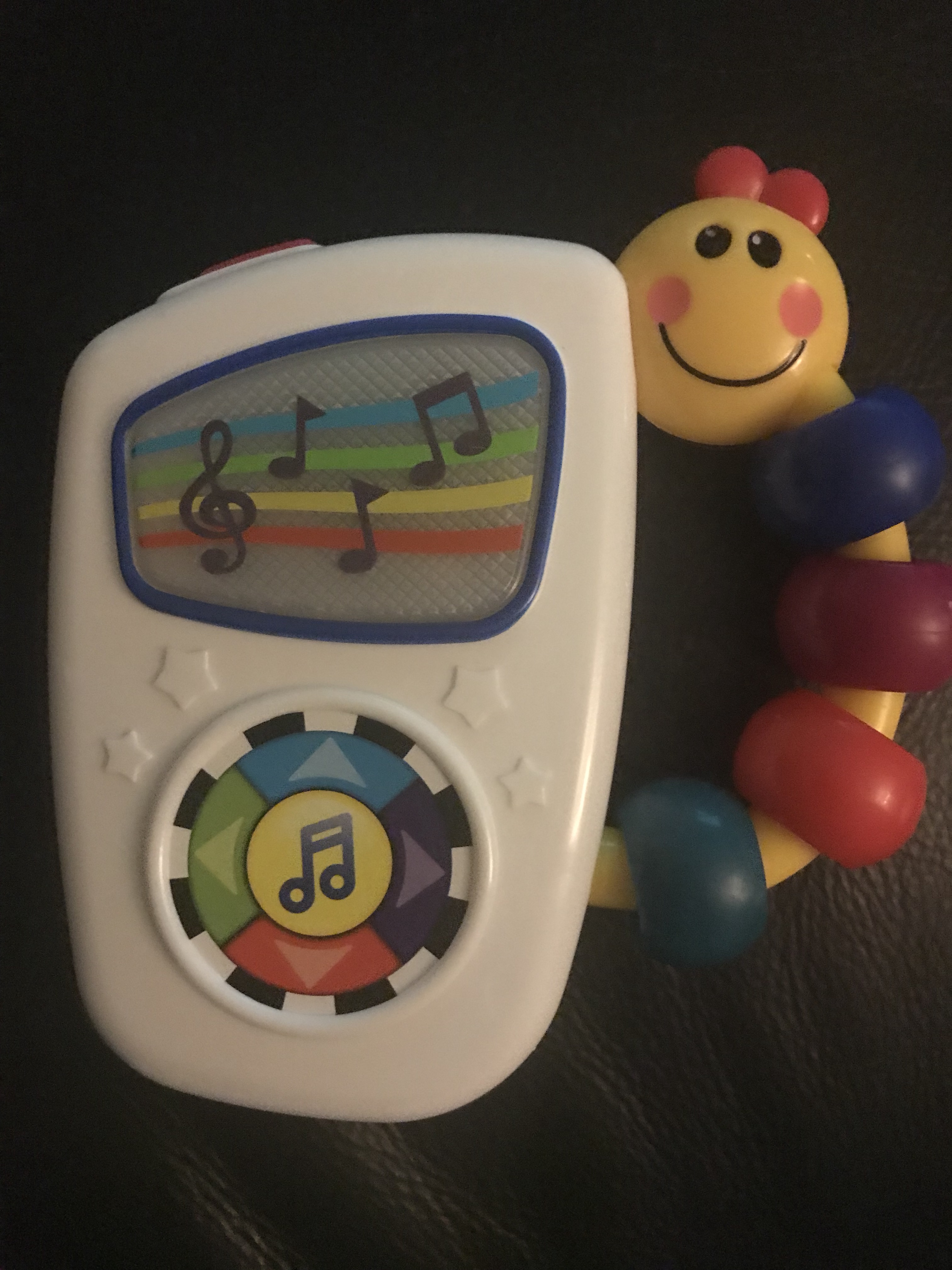 Even when it’s not playing music he holds it close often as it’s one of his favorite toys.