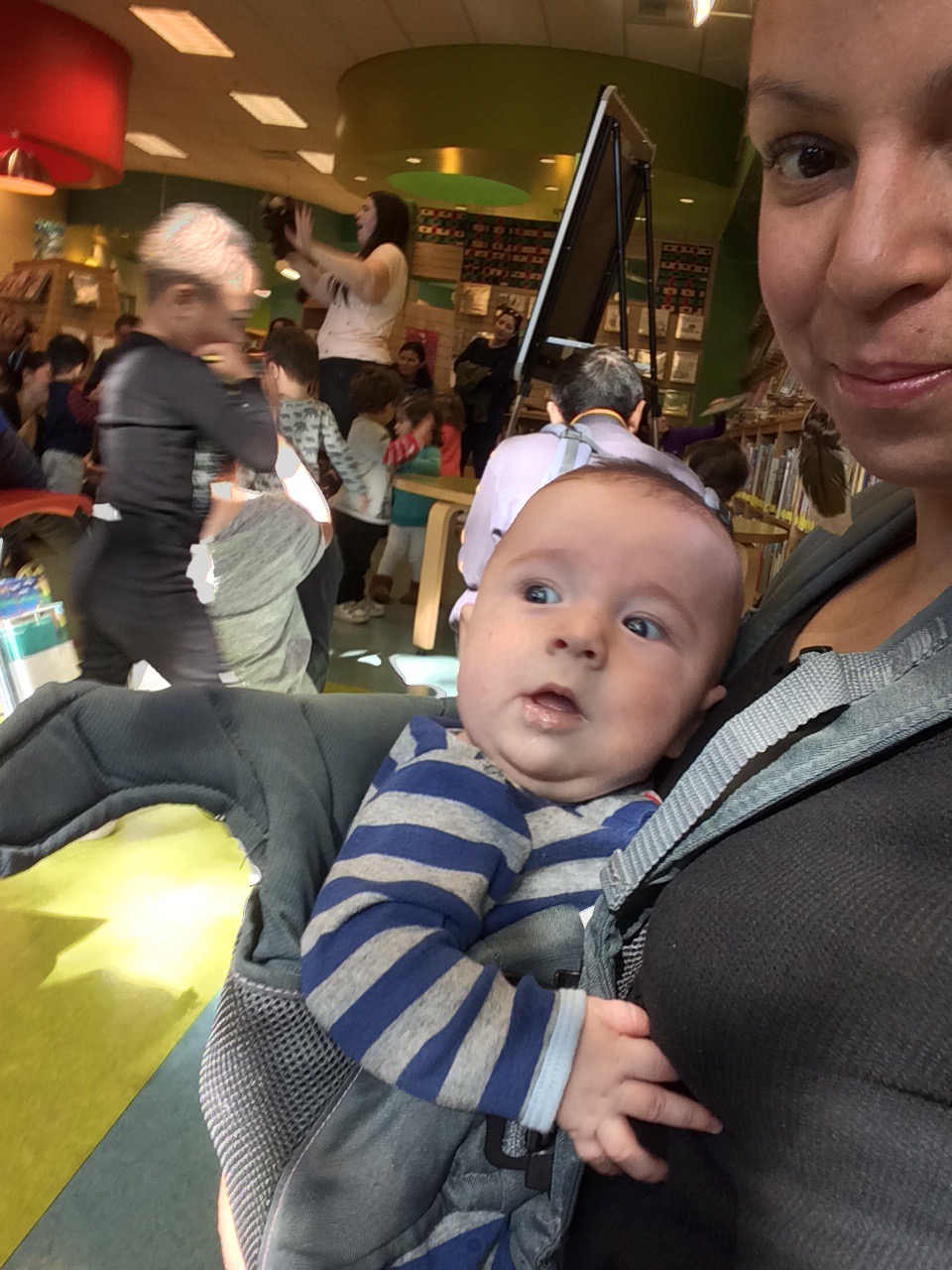 She had tried to bring him to the library for the first time, yet the crowds, noise and movement seemed a bit too much for him. Next time, I will give her the noise cancelling headphones for infants Cora gave us.