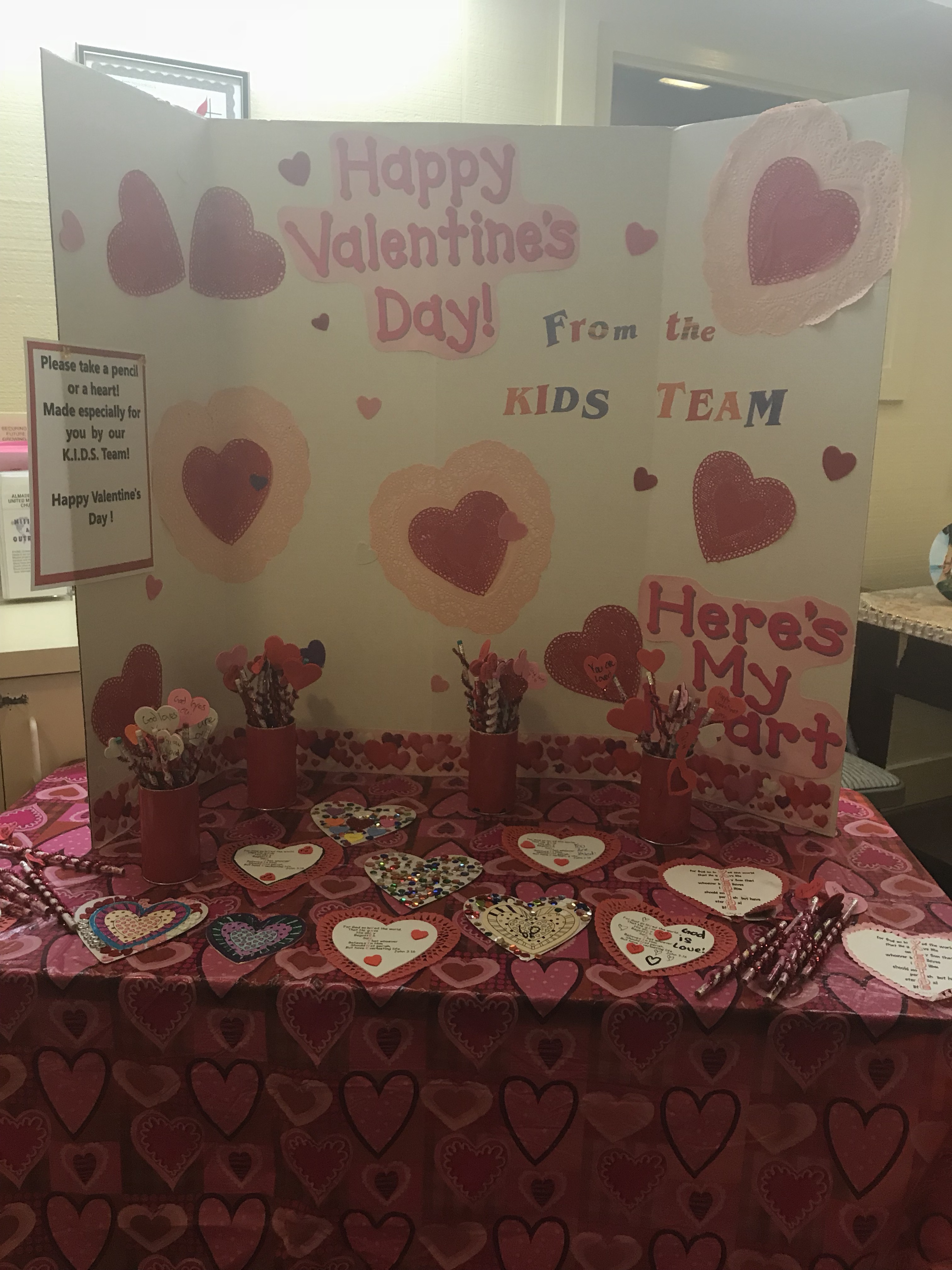 The children’s group had worked on Valentines cards and pencils for those attending.