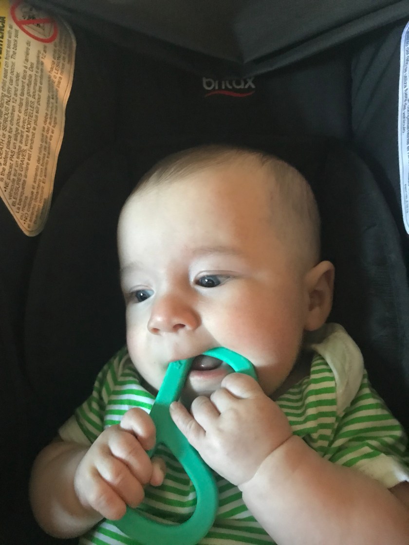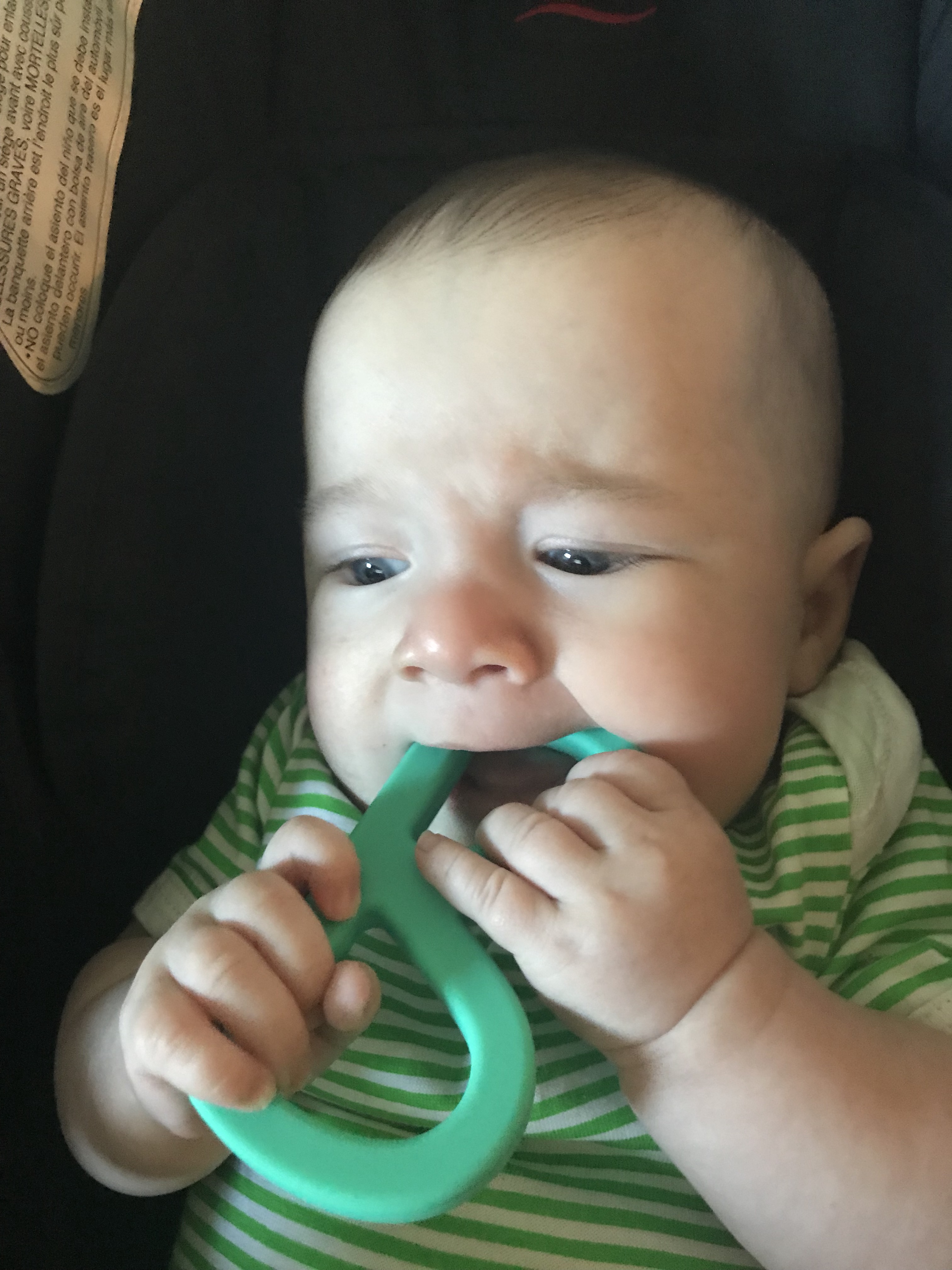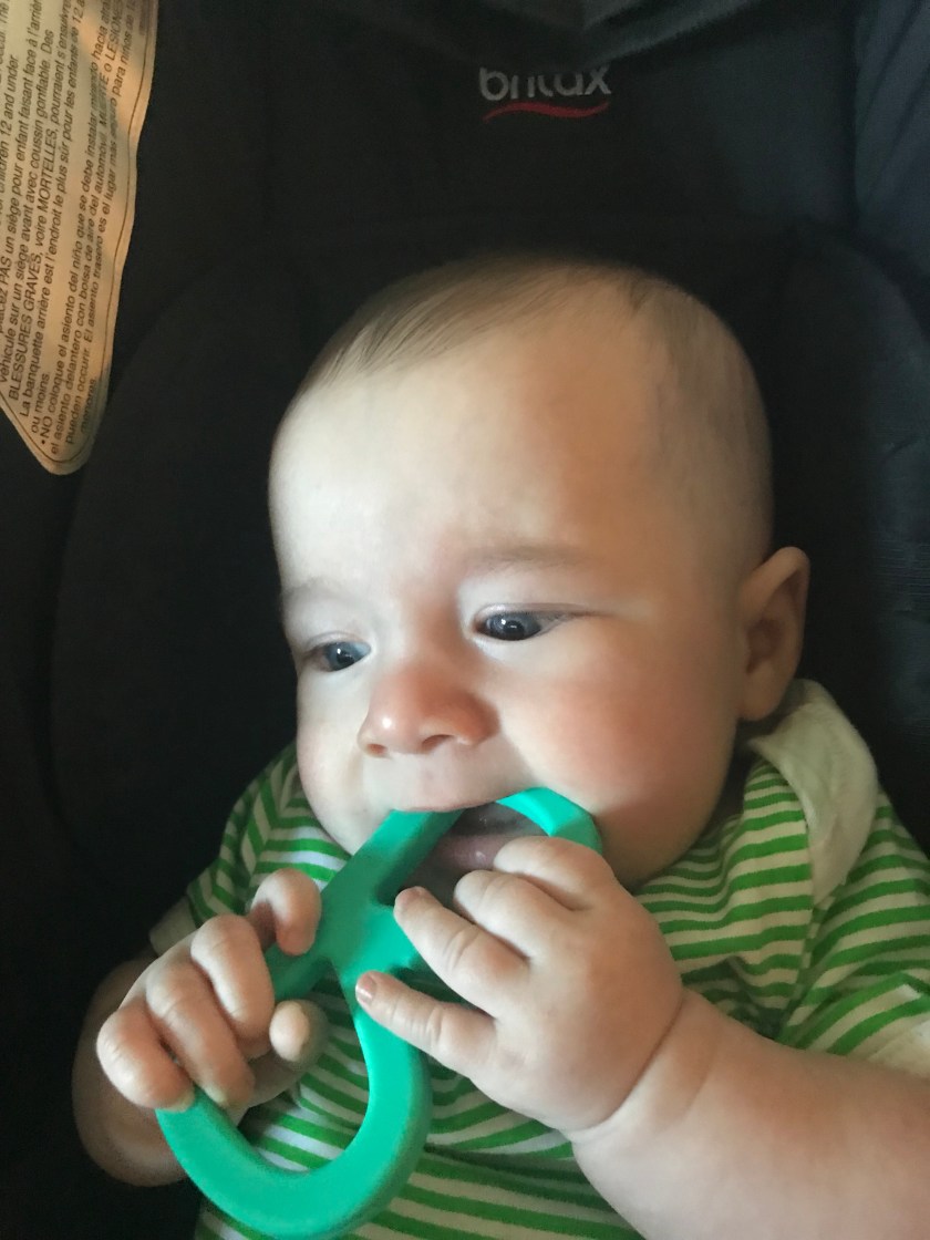 To our great amazement, unlike the other teething toys we had given him so far, this one he figured out right away what to do with and how to hold it comfortably for himself.