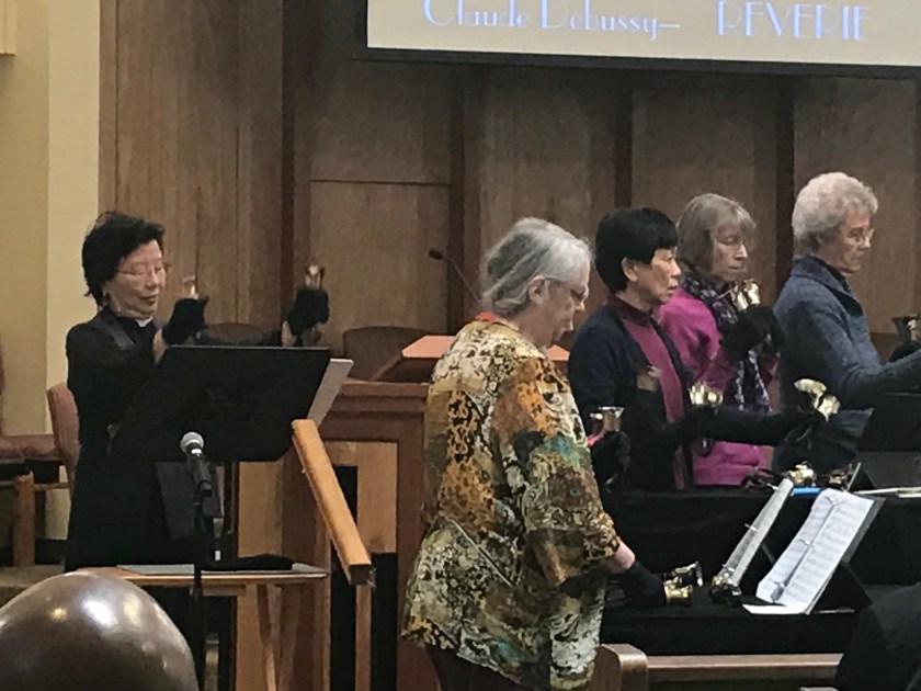 I love that Pastor Mariellen is part of the choir. She really seems to enjoy ringing the bells during her part. If the rehearsal time is ever one that fits in my schedule, I would love to join them as well.