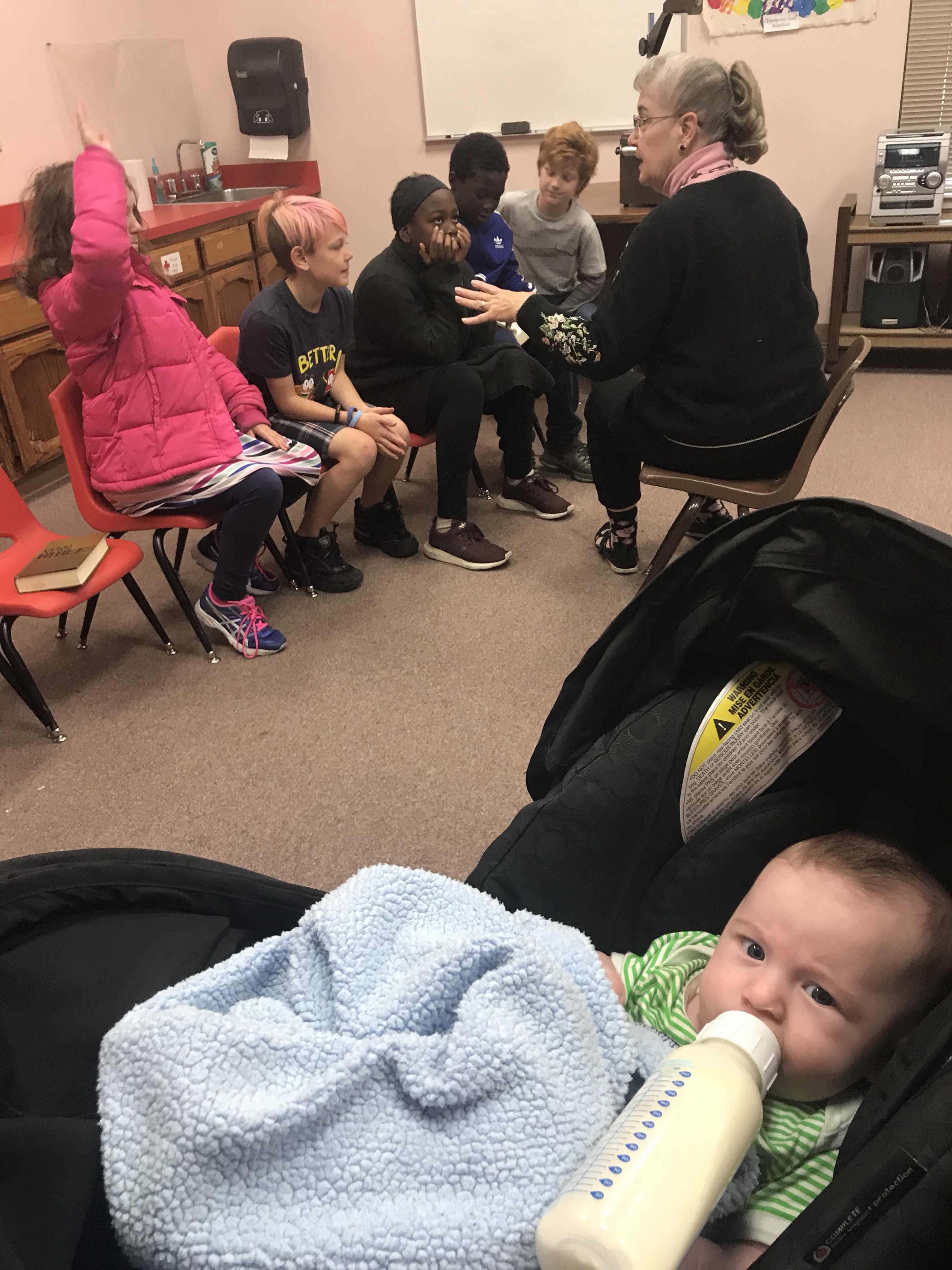 In a moment of incredibly good timing, the children were sent to wash their hands as William was getting very fussy. I used this time to take him to the church nursery and come back.