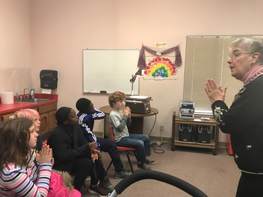 After they heard the story, she made the lesson interactive with having them practice learning a song they will be singing in front of the church soon as surprise.
