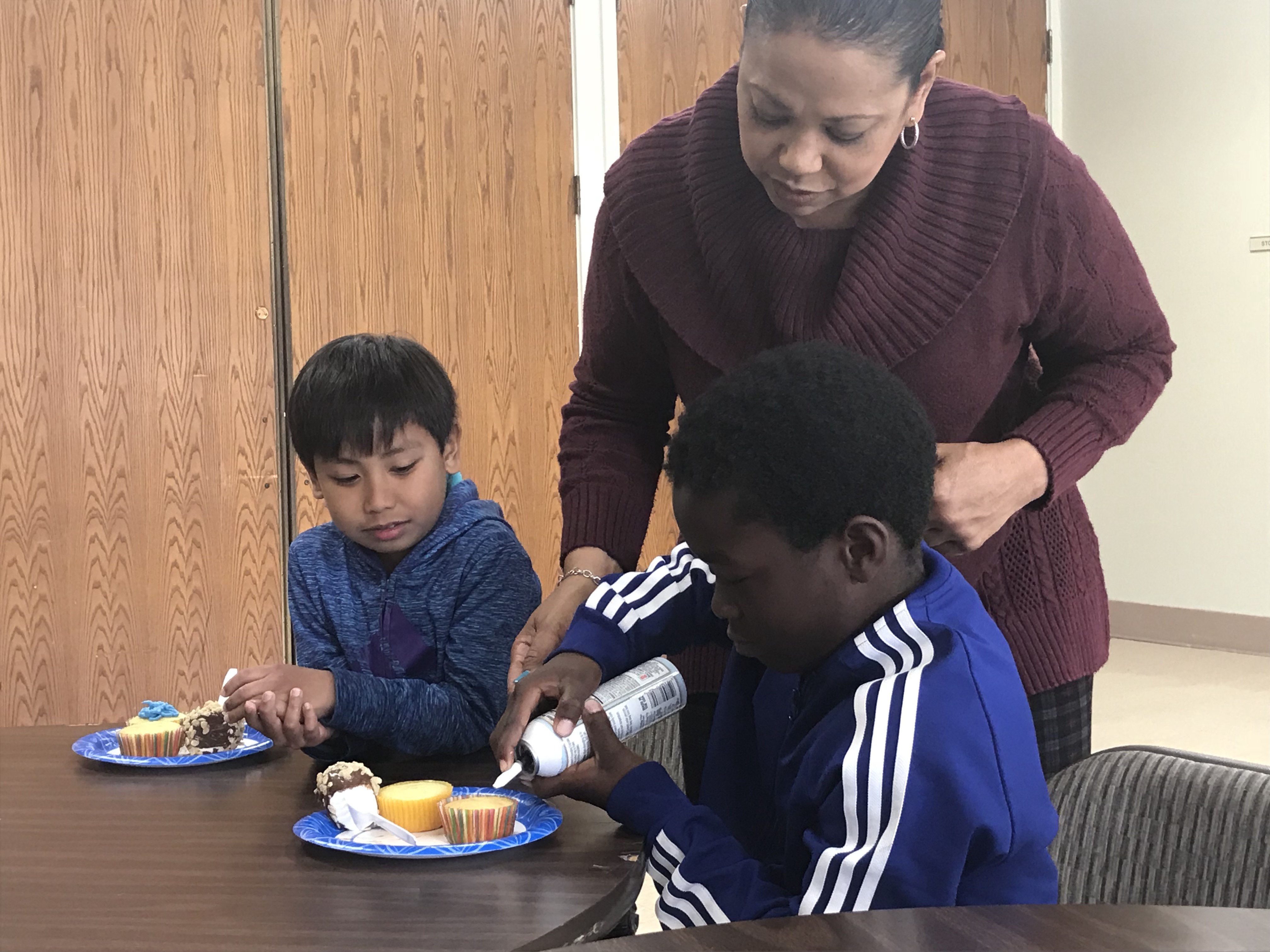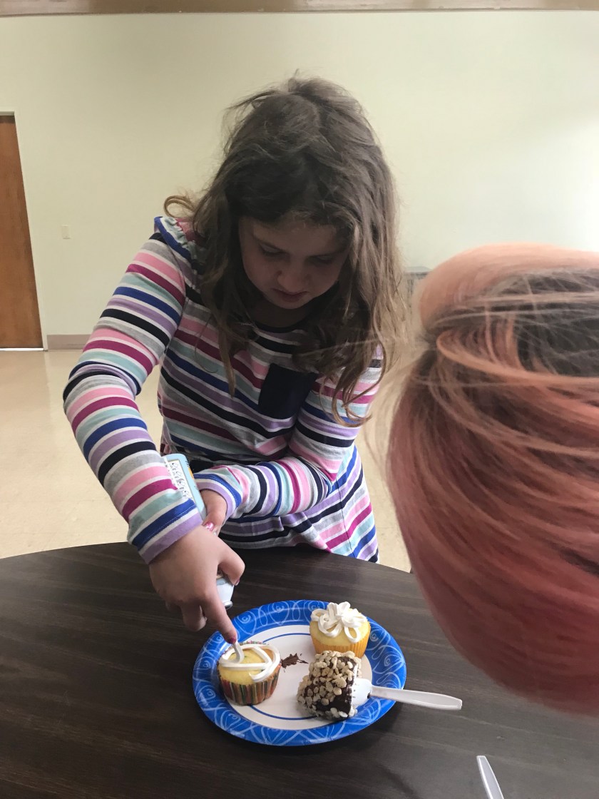 After they finished the first part, it was time for the second dessert, decorating cupcakes. Each child was given two each.