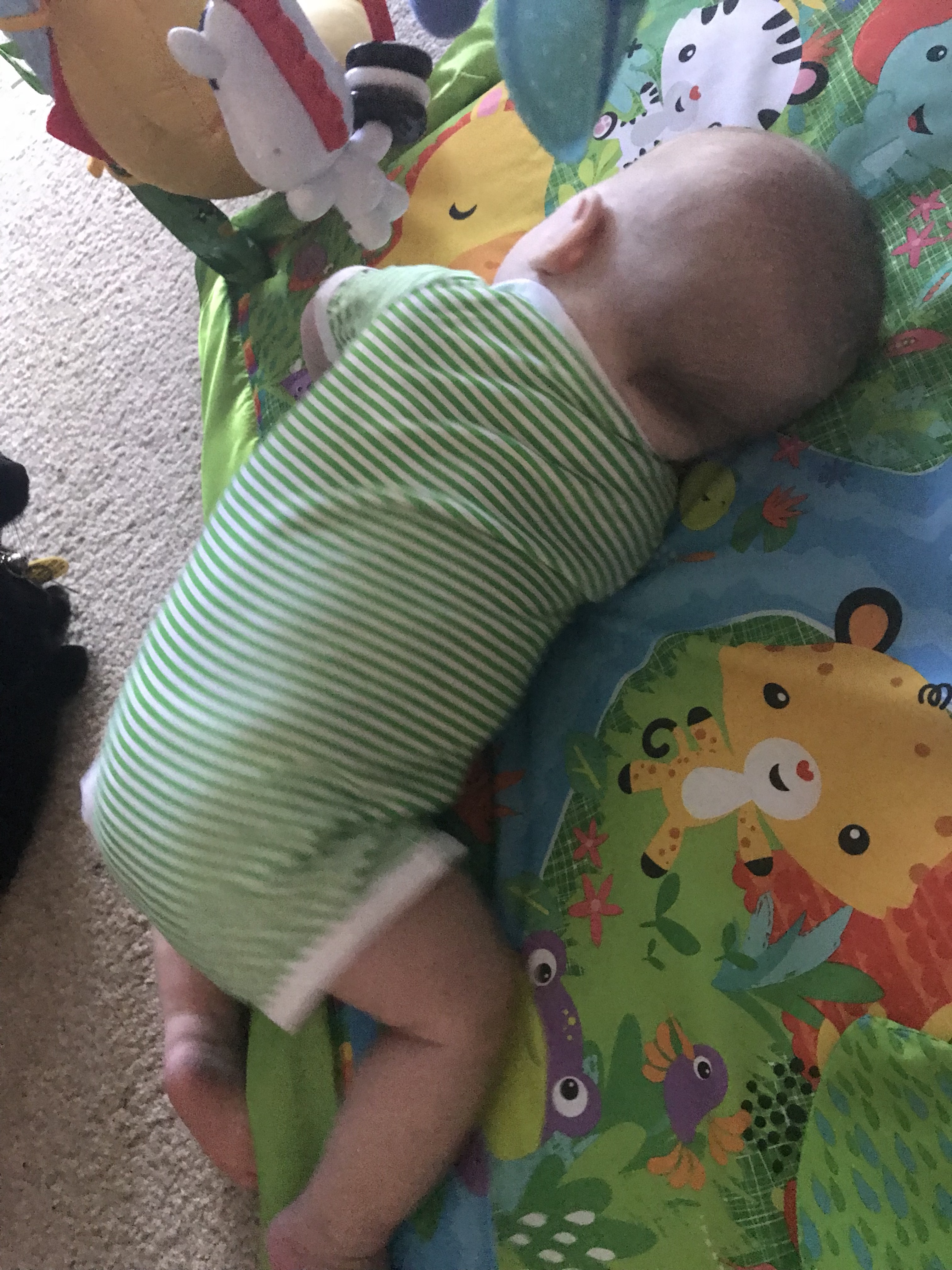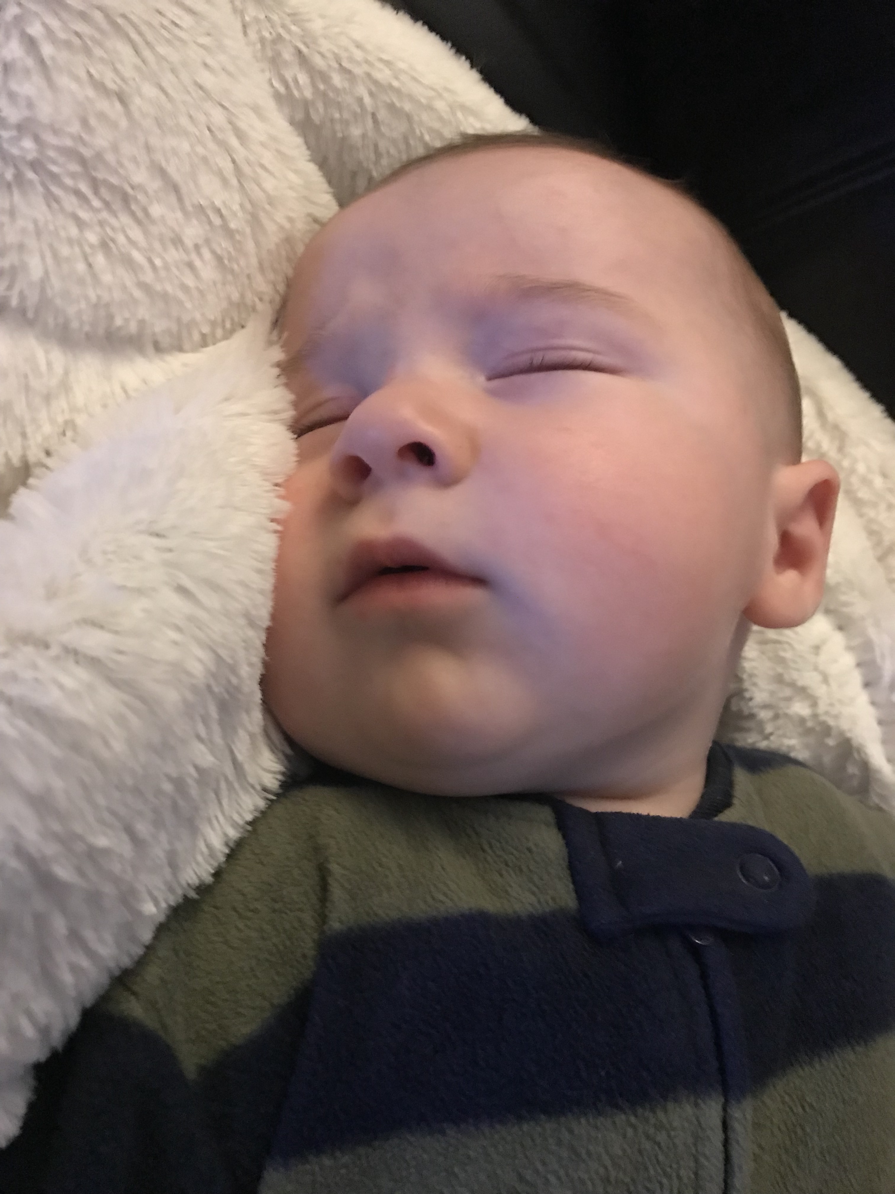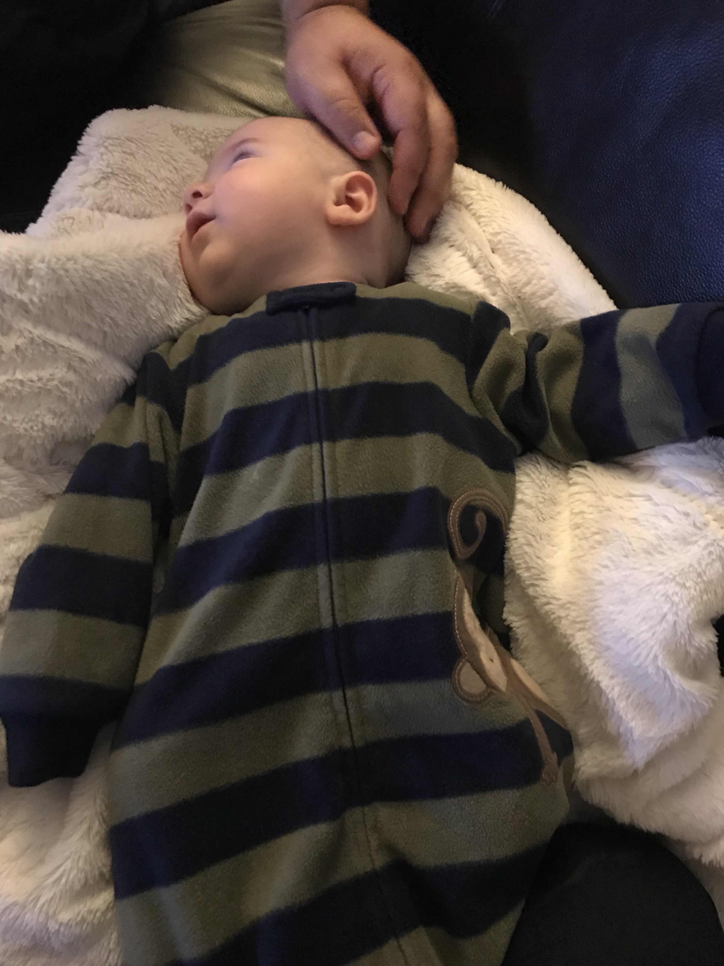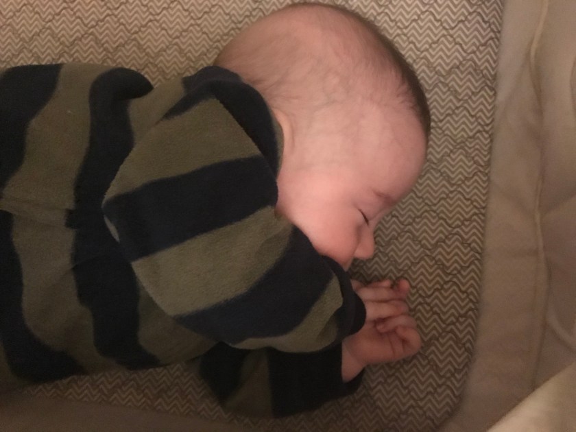 However, so far the starting on fleece trick has worked only once. We still have work to do to get him to go to sleep easily, even when we know he is very tired due to his fussy cries and rubbing at his eyes.