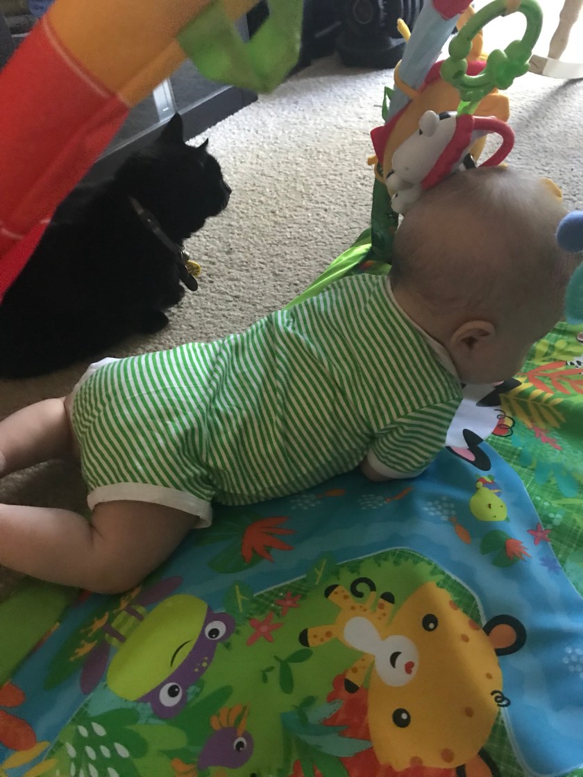 Over the last few weeks William has been trying to learn to roll over from front to back and from back to front. Sometimes he would get frustrated when he would be on his front for Tummy Time, even when it was he who made that roll, as he was unable to roll again onto his back. Other times, he enjoyed being on his front, even though he was unable due to his age and strength level to crawl.
