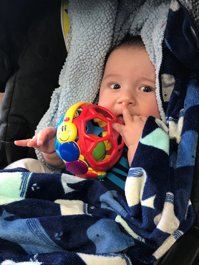Midway through my pregnancy, Aunt Carol and I had discussed what kinds of toys babies liked. She told me that Baby Einstein ones were always amazing. The Baby Einstein Caterpillar Bendy Ball is a simple toy that always seems to be close to William whenever he is awake.