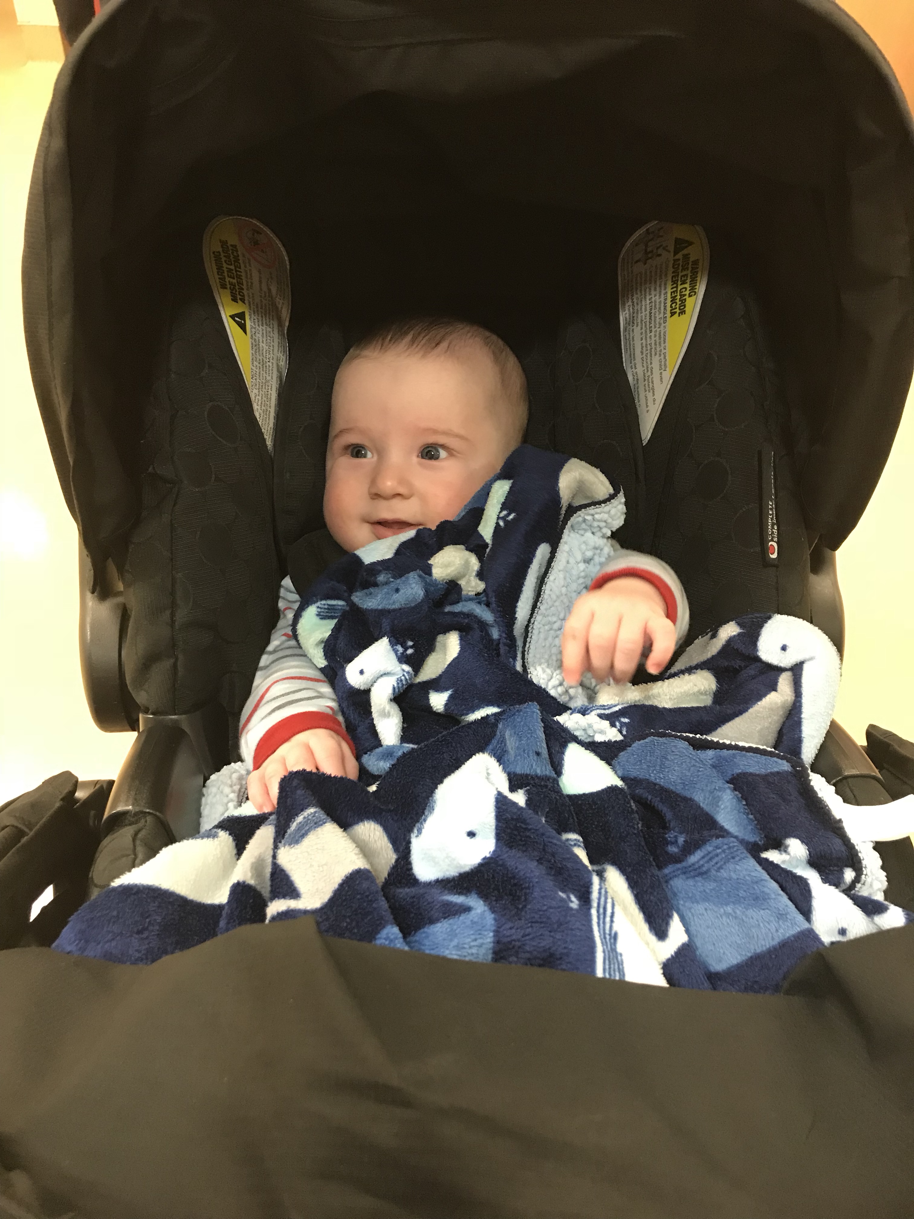 Alison ordered two different tests for me that required fasting. I was told to get an 8 a.m. appointment if I could, so I could eat up till 10 p.m. the night before. I’d hoped William might sleep through the appointment, but he was wide awake as we waited in line.