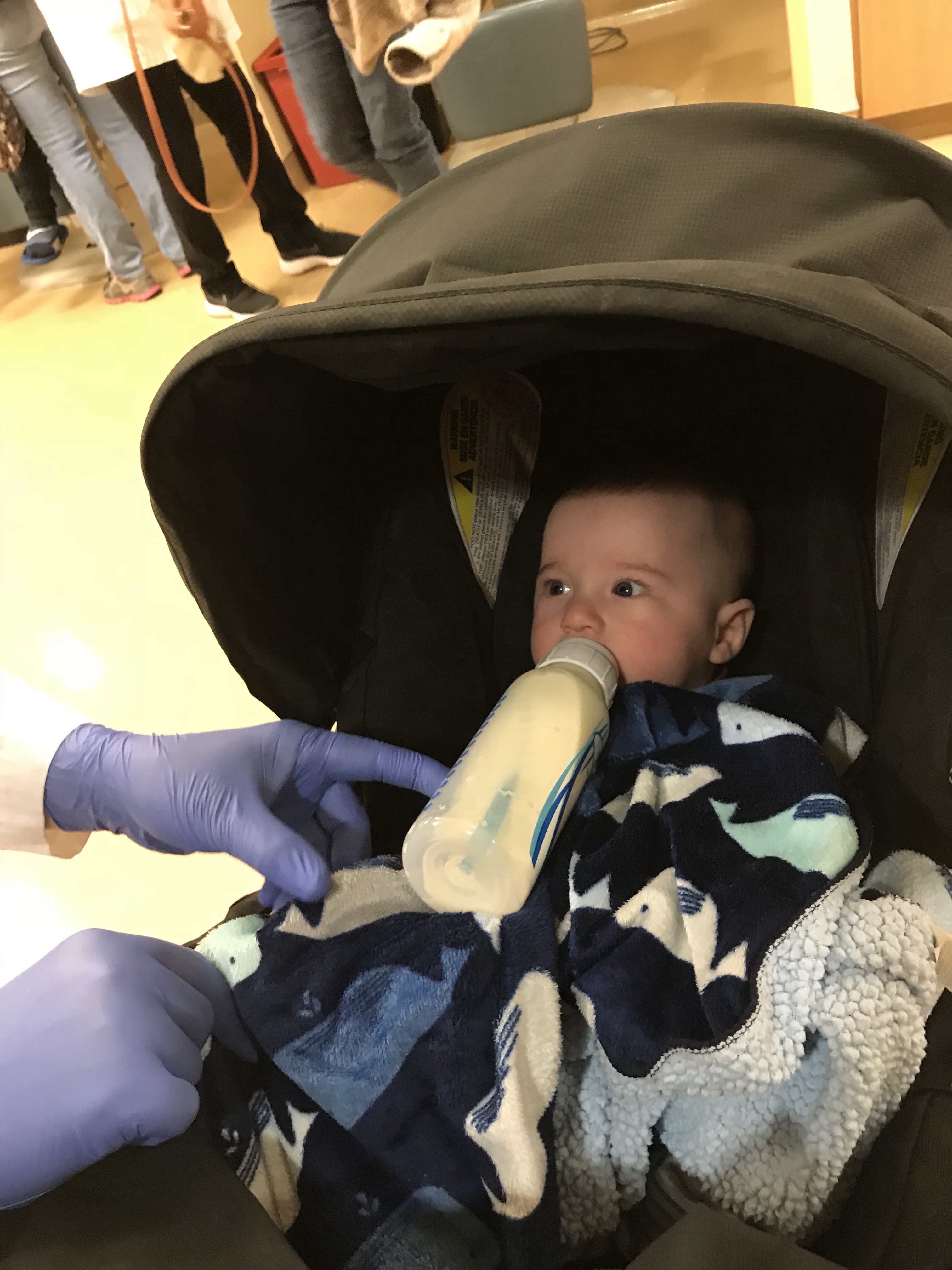 The tests I had included a fasting glucose and a measurement of average glucose in my blood stream for the last three months. I’d heard breastfeeding could lower glucose even in women who had had Gestational Diabetes, so I was hopeful I’d pass the tests. Though I wasn’t allowed to eat till the tests were complete, William had no such restriction, so he gleefully took a bottle.
