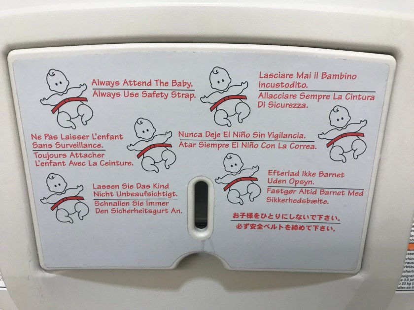 They are so serious about strapping in the child that the message is written in several foreign languages.