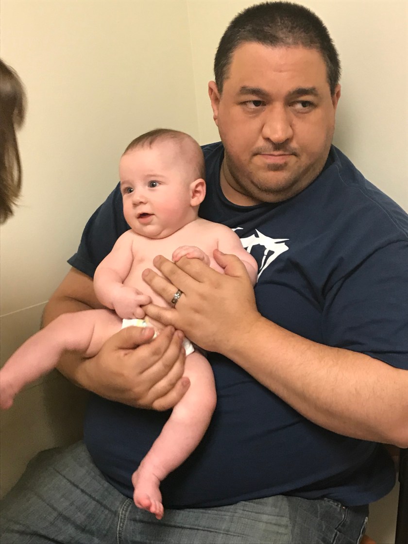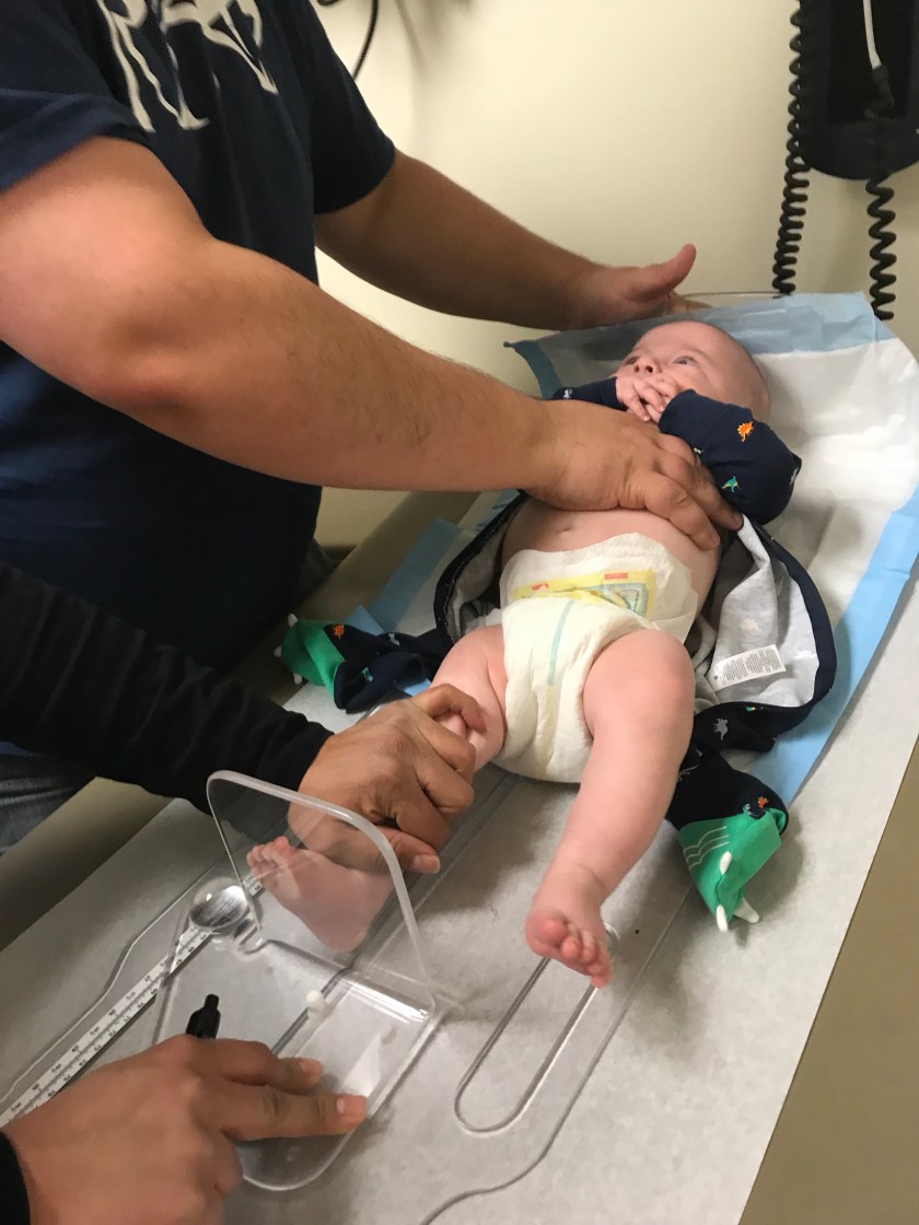 William rolled around and made it hard for Dr. V a bit, till he was able to finish his exam and let us know that William was still a healthy little baby. His height and weight are still along the same growth curve he has mostly followed since birth.
