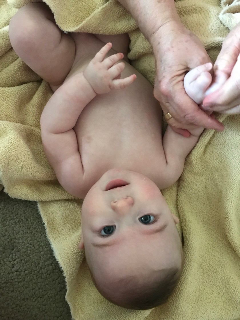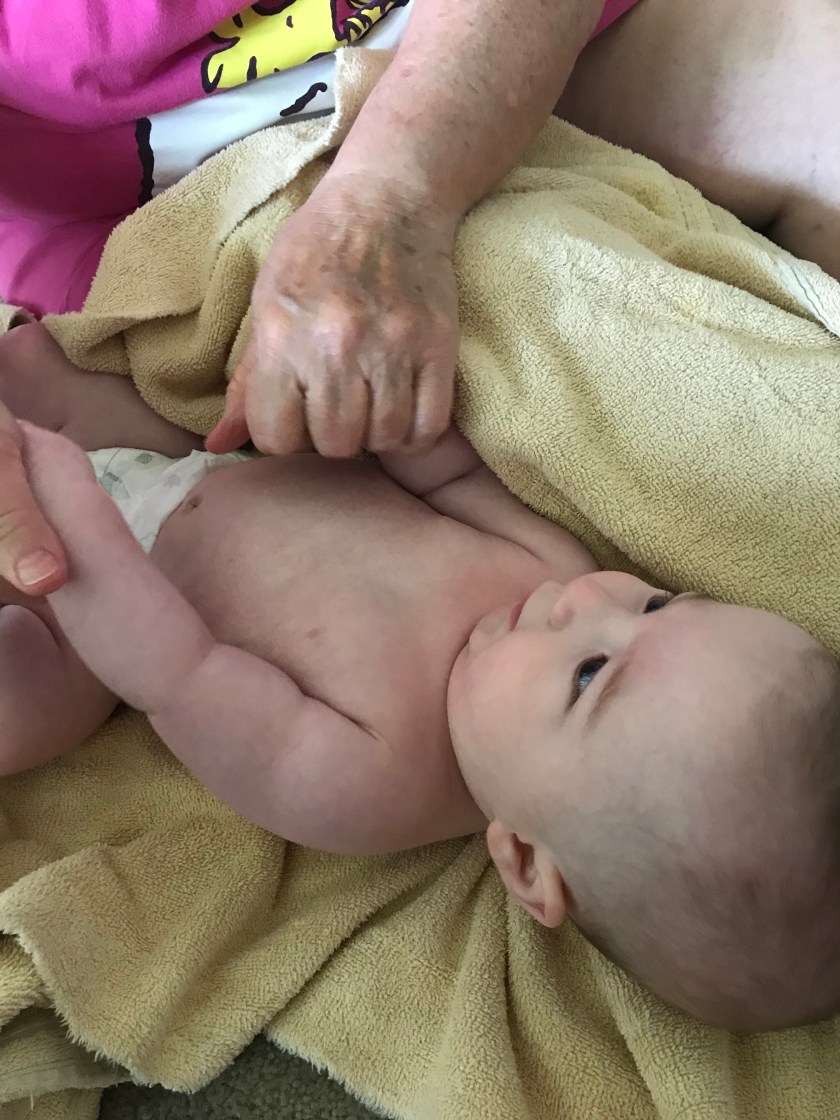Candy loves to make sure he gets a nice baby massage in as well as being totally dried off.