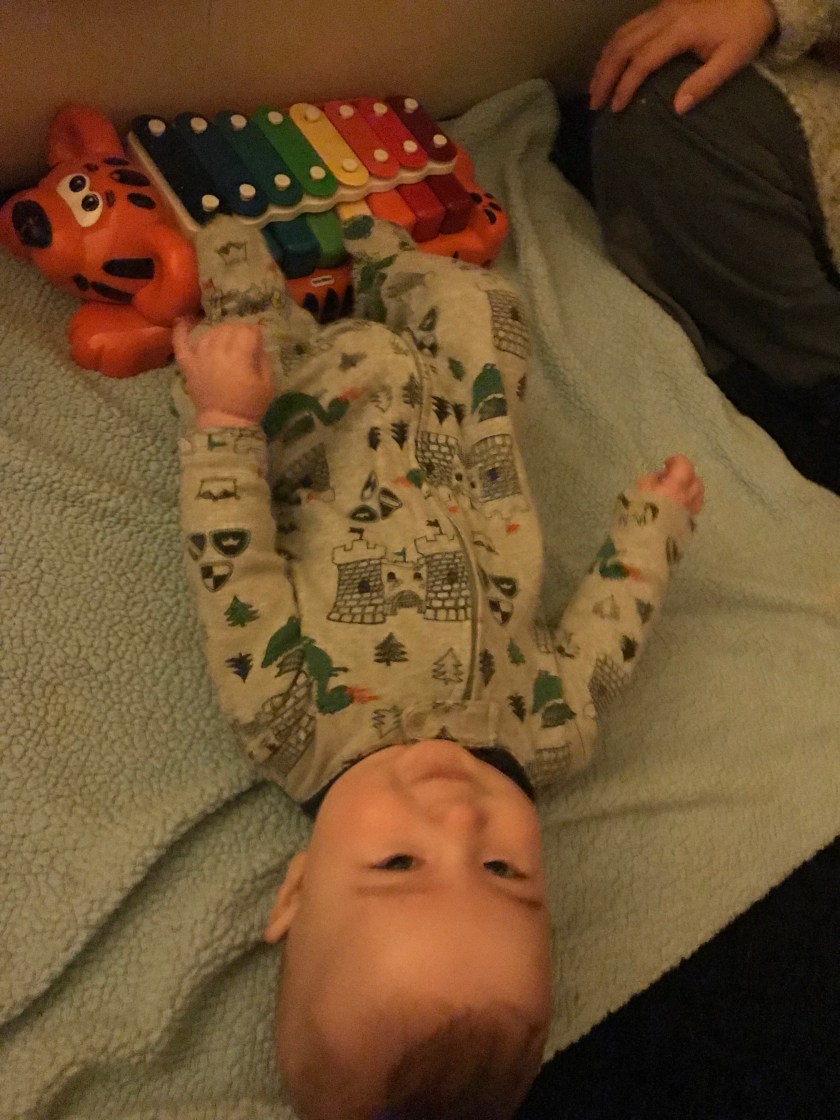 When I was growing up I had somewhat of a desire to be in band. I never played an instrument, though I did sing in choir in junior high and was a flag twirler for part of high school. I would like to inspire William to potentially learn to play an instrument or two. Part of this also stems from his Godbrother, Tyler, playing the guitar and drums. So when I told Maribel they had sent him something musically related that he’d get for Easter, I was intrigued when she told me she had him started in that direction as well.