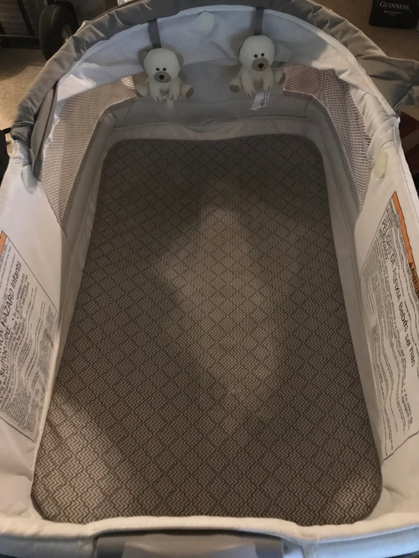 I’ve blogged a few times about how often people tell Matt and I that William will grow up before we know it. We definitely see this for ourselves when clothes that fit him one day first get too tight then eventually don’t fit him at all, or when we look at photos from his birth to now and see how big he’s gotten. His latest growth spurt, in terms of height and weight, along with how he can push himself up on his hands mean it was time to make the transition from the bassinet to his Lotus Travel Crib.