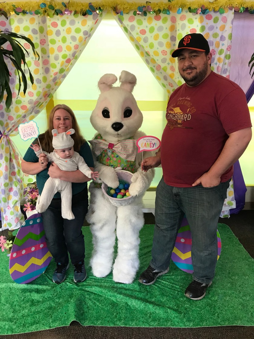 It was then that I realized they had photo booth type props, so we used these for our group picture. William even seems to be reaching for the basket of eggs.