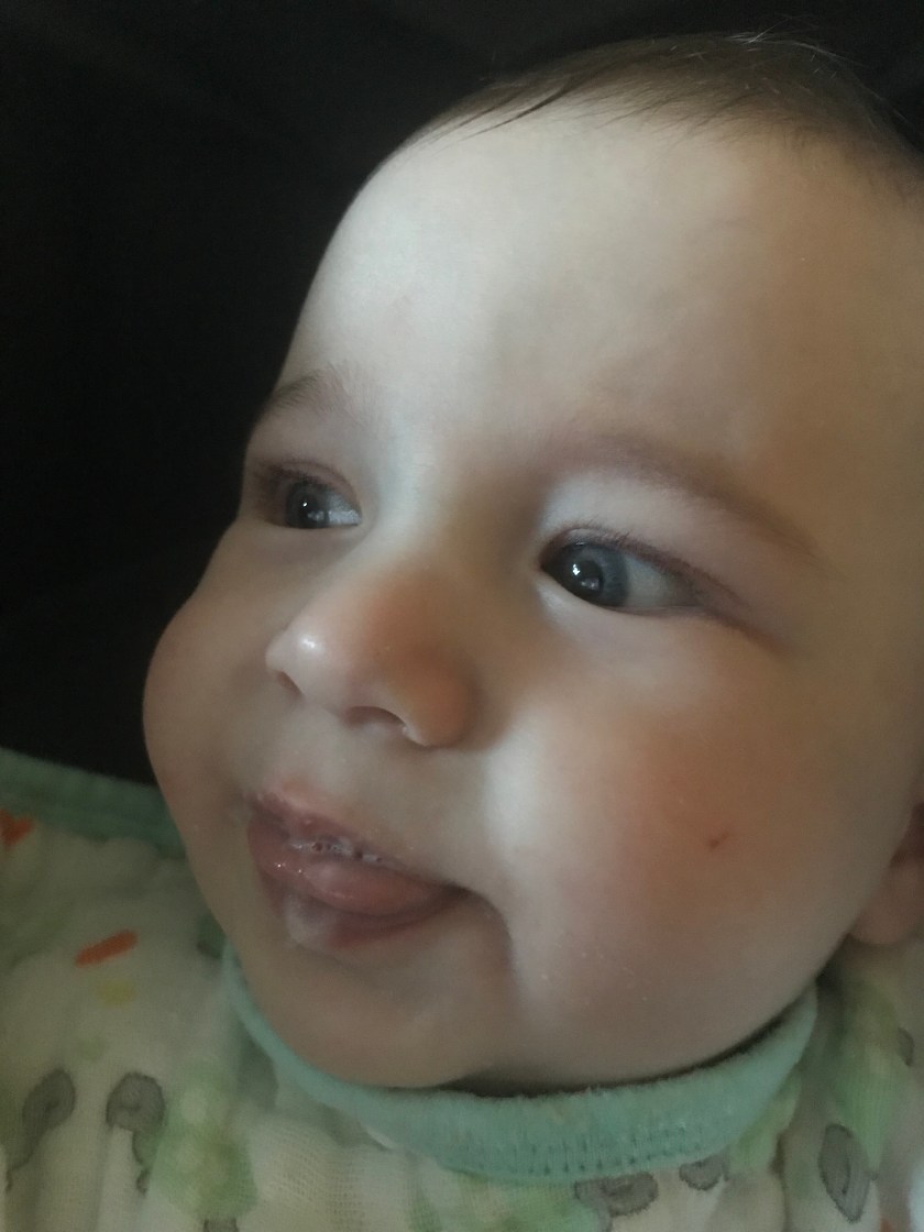 Just in time for his six months, William started a new behavior: blowing bubbles accompanied by strings of babbles often starting with the letter b. While messy, it was adorable and fun to capture in photos.