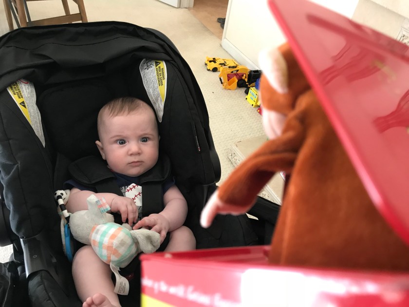 Matt has been friends with Jason since they were young kids. He has great parties at his house which are attended by many adults and his twin boys who are now 6. When we arrived I showed William a Jack in the Box, and he seemed rather nonchalant about it, even after a few tries.