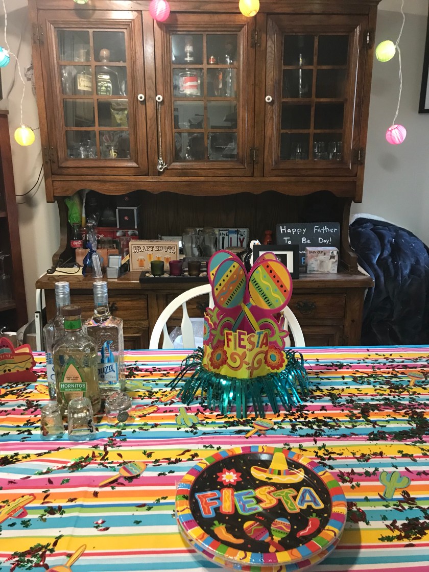 Matt loves decorating for parties. Last year we had had a small Cinco de Mayo Party (though I was only drinking mocktails due to my pregnancy) and we used some of those decorations along with some new ones to create this table for our party.