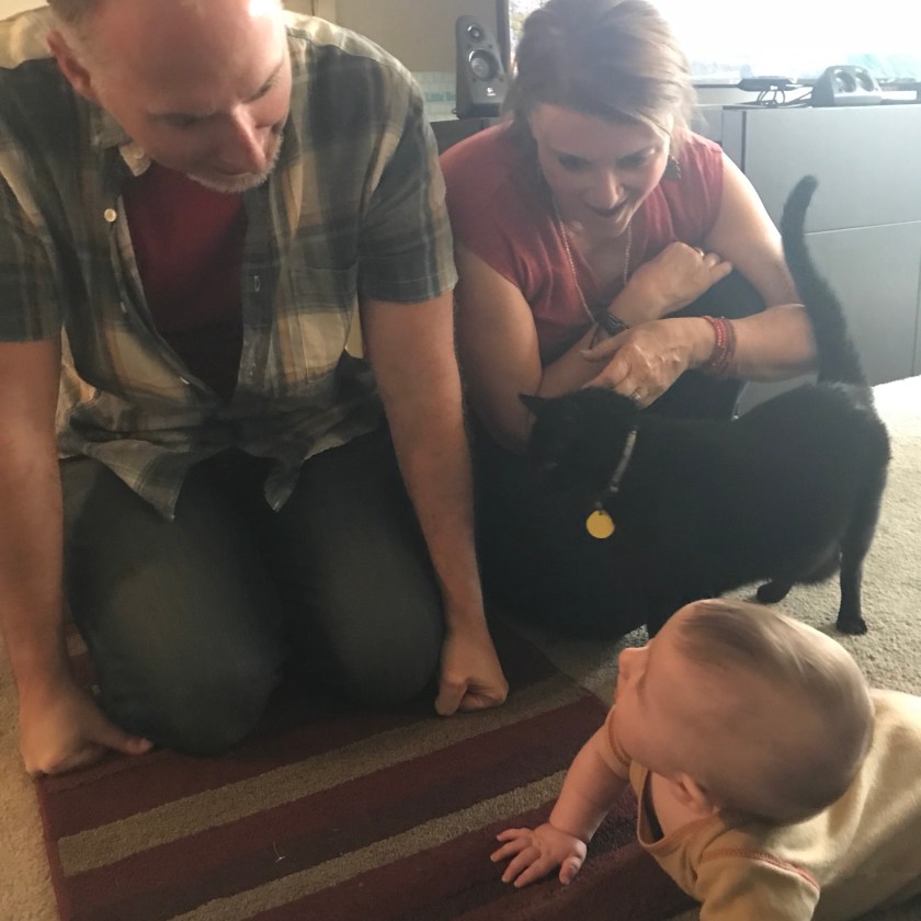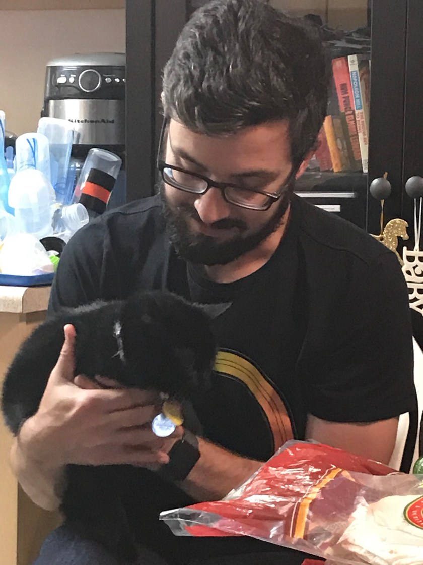 Shauna and Jason have two cats. Inky seemed to know this and came right up to Jason to be held by him.
